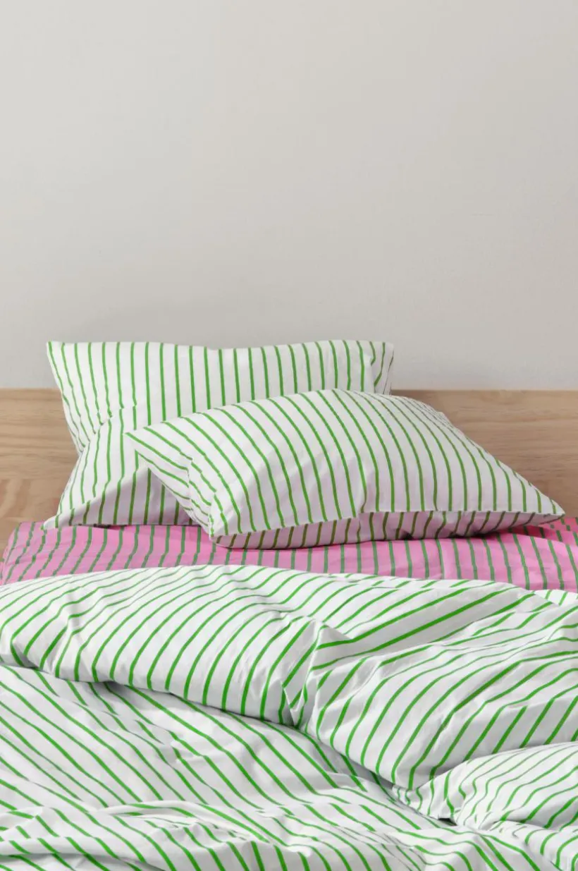 SIMA 2-pack örngott av ekologisk bomull. Tryckta ränder i krispiga färger. Förvandla ditt sovrum till en vilsam plats.