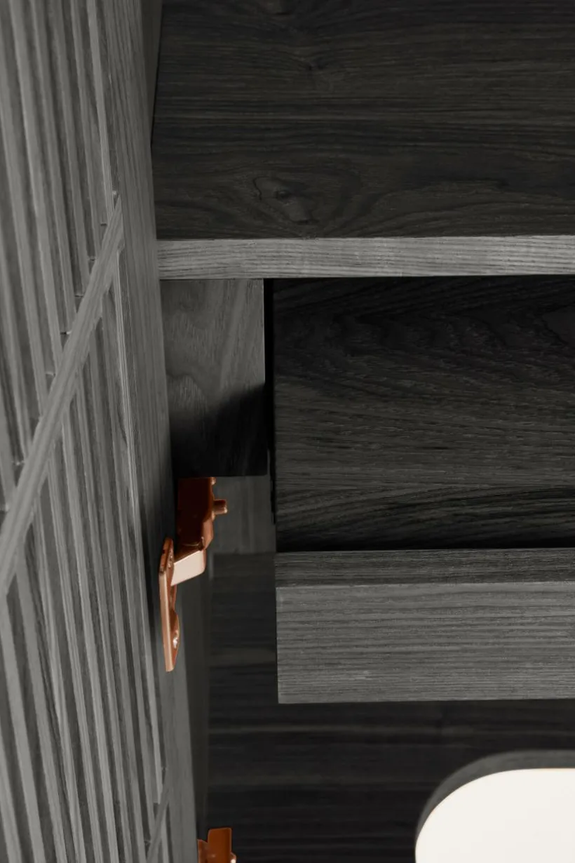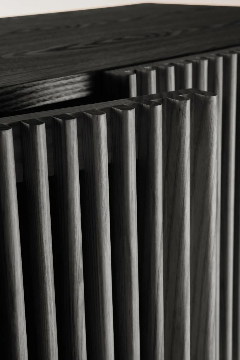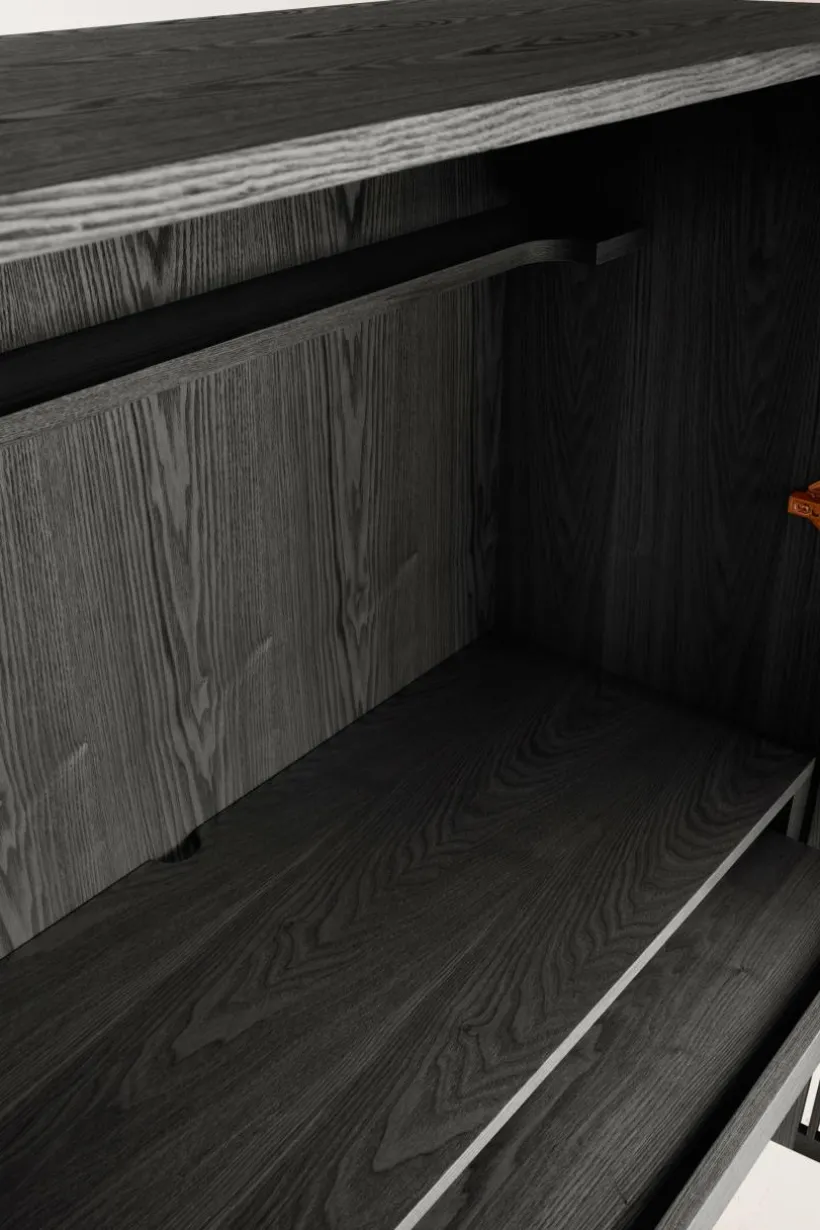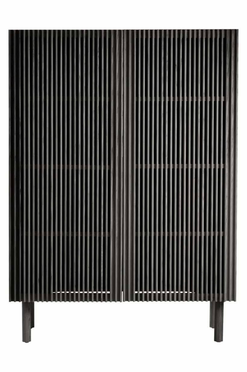 Skåp med inbyggt skrivbord. Skåpet har dörrar och ben av massiv ask, stomme av MDF med askfaner. Med detta skåpet får du det perfekta hemmakontoret som döljer din dator och arbetstillbehör när du är ledig. Bakom dörrarna finns ett utdragbart skrivbord och en specialhylla för din skärm. Hyllan ovanför skärmen lämnar utrymme för skärmen och den nedersta hyllan är formad så du får benutrymme när du sitter och arbetar. Skåpet ger en naturlig känsla i sin skandinaviska stil med en touch av retro. De stilrena dörrarna består av askribbor med rundad kant och lätt transparens uppstår i mellanrummen. Raka, runda ben ger en nätt känsla. Hål finns i bakstycket för eventuella kablar. Skruvar medföljer. Viss montering krävs. Monteringsanvisning medföljer.