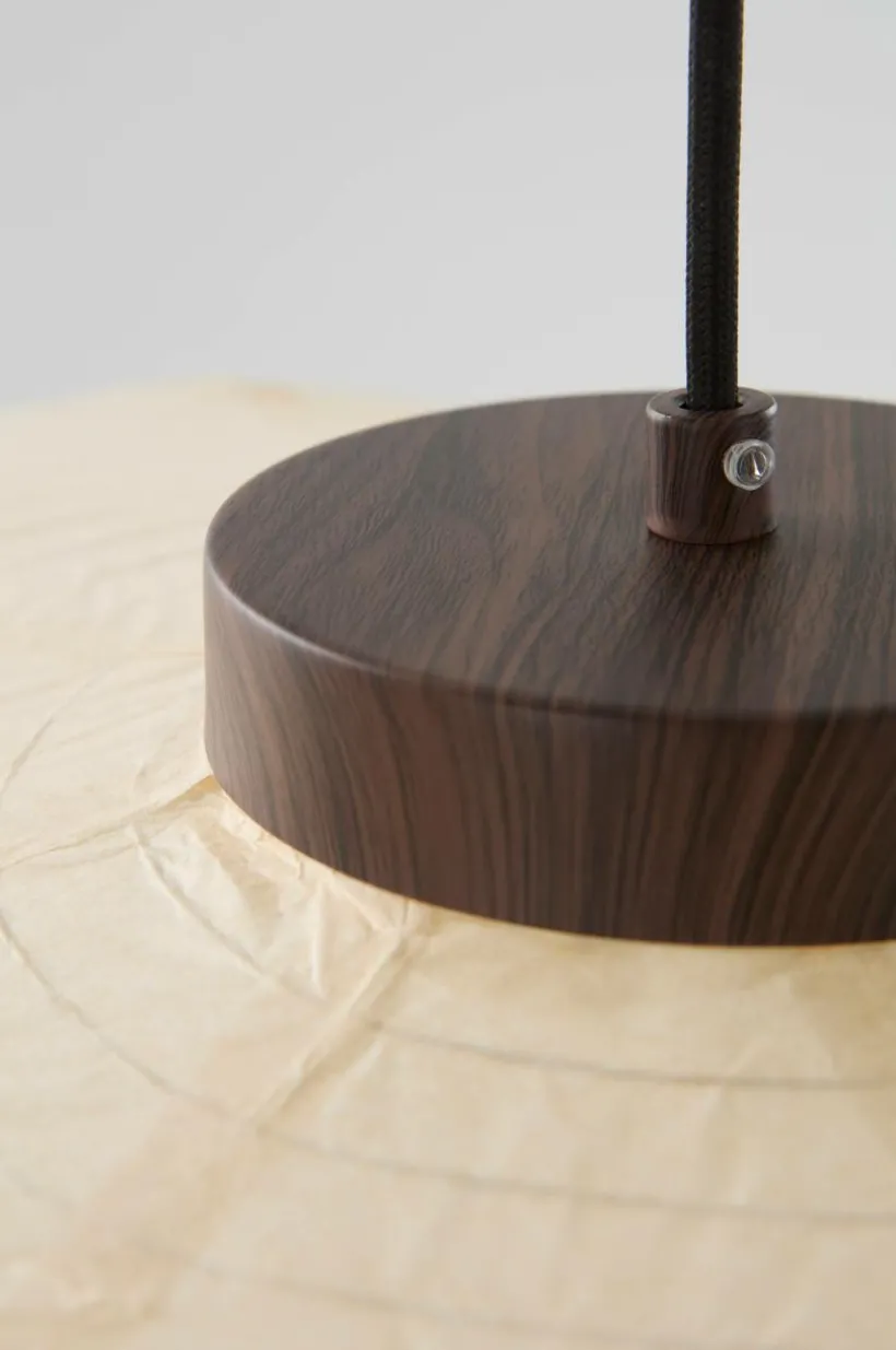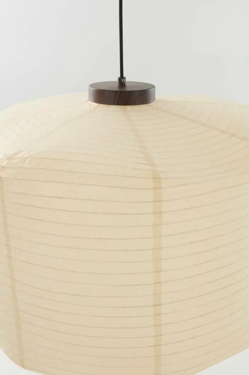 Taklampan SIV är en stor rispapperslampa inspirerad av asiatisk estetik, som ger en touch av retrocharm till din heminredning. Basens träliknande utseende, tillverkad av vattentryckt metall, ger en touch av natur. Det mjuka ljuset skapar en varm atmosfär, medan den textilklädda sladden ger en lyxig finish. Perfekt för dem som söker en blandning av vintagestil och modern sofistikering i sina vardagsrum.