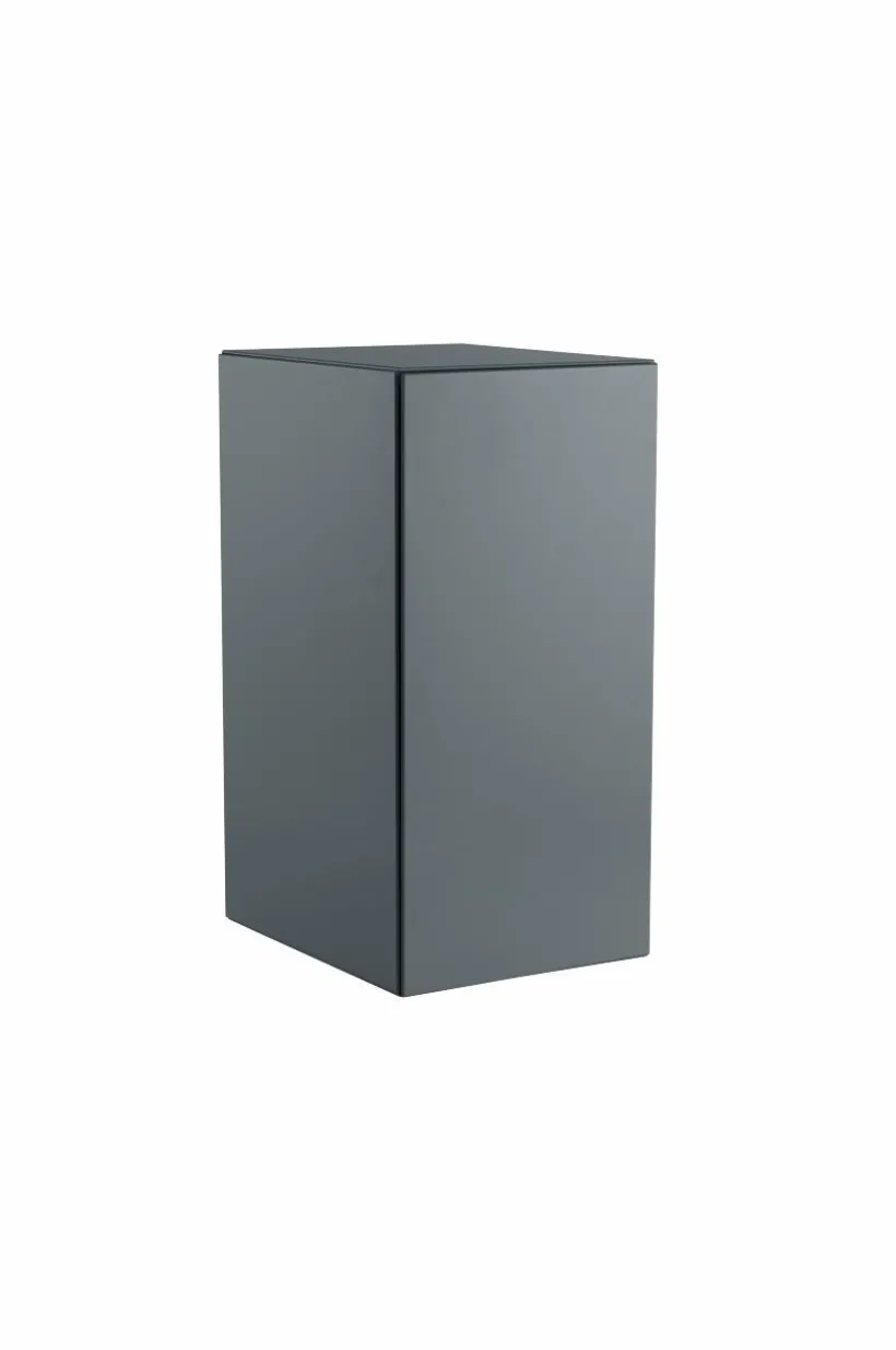 Detta skåp har en slät dörr med pushfunktion, det vill säga att du trycker dörren mjukt inåt för att öppna och stänga. Dörren har fint fasad kant inåt, en detalj som förhöjer. Skåpet har ett flyttbart hyllplan. Skåpet saknar ben och monteras på väggen i den höjd du önskar, vilket ger ett stilrent och effektfullt resultat. Upphängningslist medföljer, skruvar och plugg ingår ej.