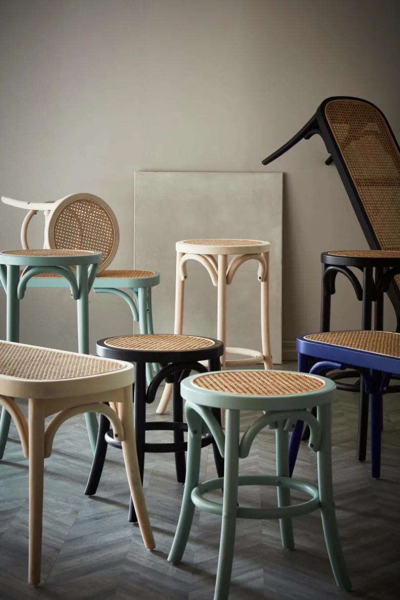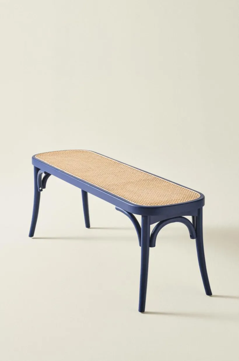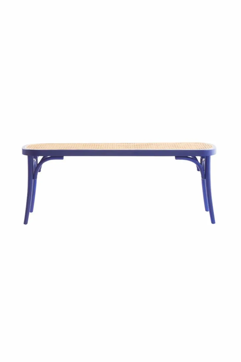 Sittbänk som är mycket användbar och ger extra sittplatser där det behövs. Även praktisk som avlastningsyta i hallen. Bänken har stomme av målat björkträ med sits av rotting.
