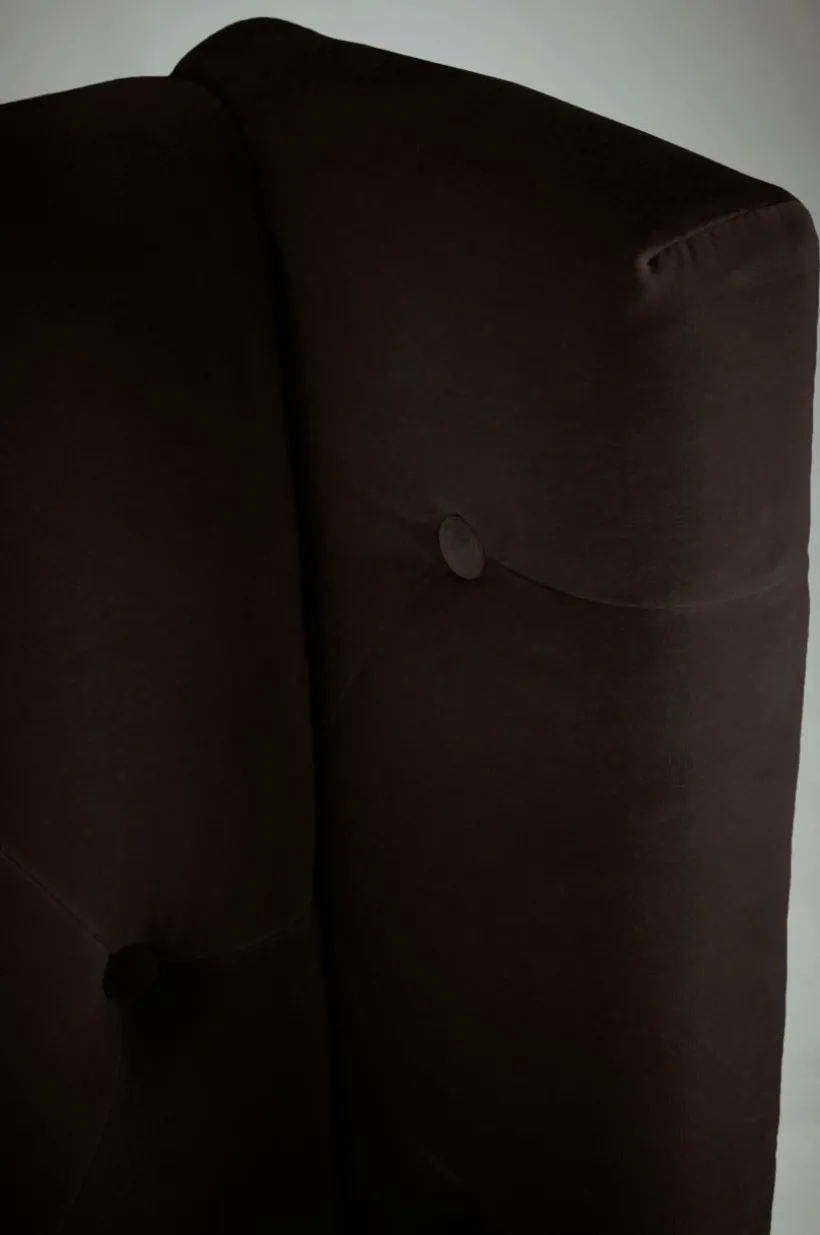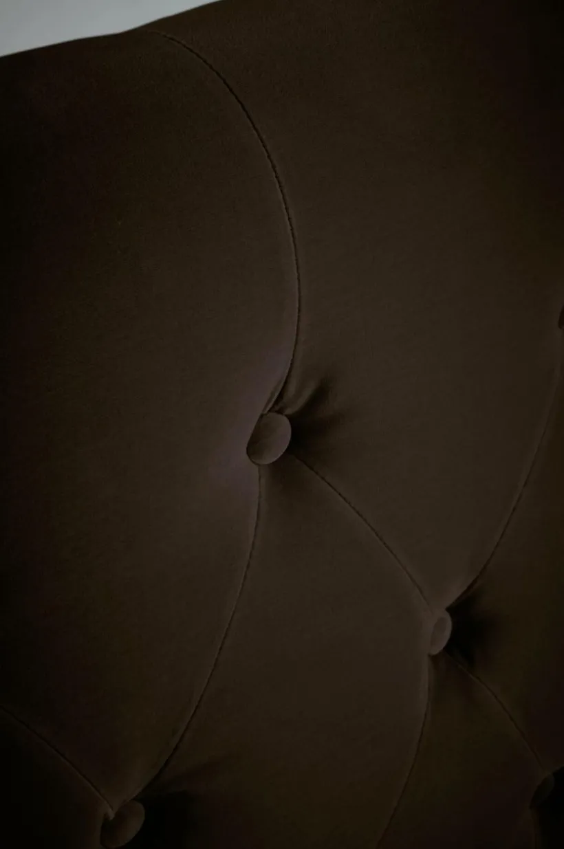 Fristående gavel klädd med sammet och djuphäftade klädda knappar. Går även att hänga upp på väggen. Du skapar en lyxig hotellkänsla hemma med en djuphäftad sänggavel med vingar. Allt i finaste sammet av bomullsmix.