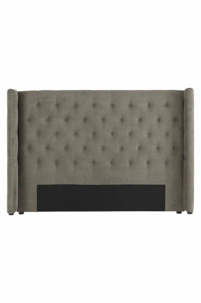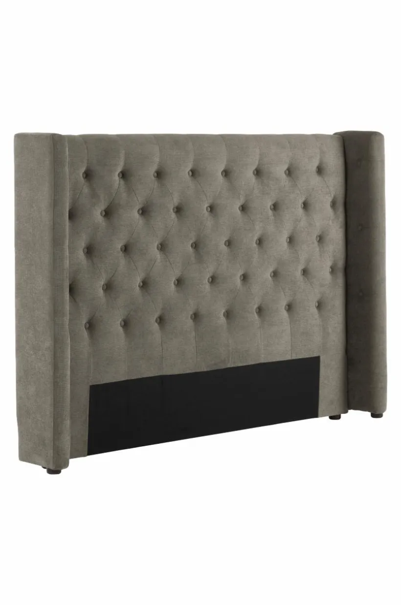 Fristående sänggavel klädd med ett enfärgat tyg som är mjukt och behagligt. Sänggaveln har vingar framåt och de djuphäftade, klädda knapparna ger en lyxig känsla. Stommen är av plywood och massivt trä som vadderats med skumgummifyllning. Väggfäste ingår, en ramp på baksidan gör det enkelt att hänga upp gaveln om du vill det. Du kan också klämma fast sänggaveln mellan sängen och väggen. Viss monterings krävs. Monteringsanvisning medföljer.