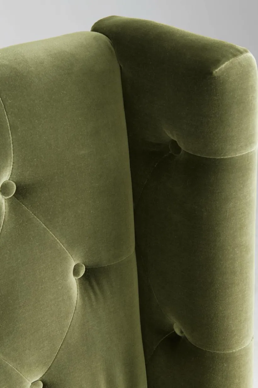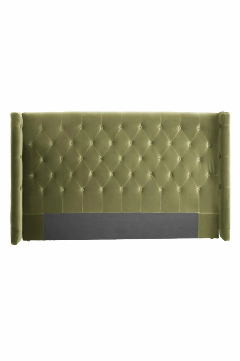 Fristående gavel klädd med sammet och djuphäftade klädda knappar. Går även att hänga upp på väggen. Du skapar en lyxig hotellkänsla hemma med en djuphäftad sänggavel med vingar. Allt i finaste sammet av bomullsmix.