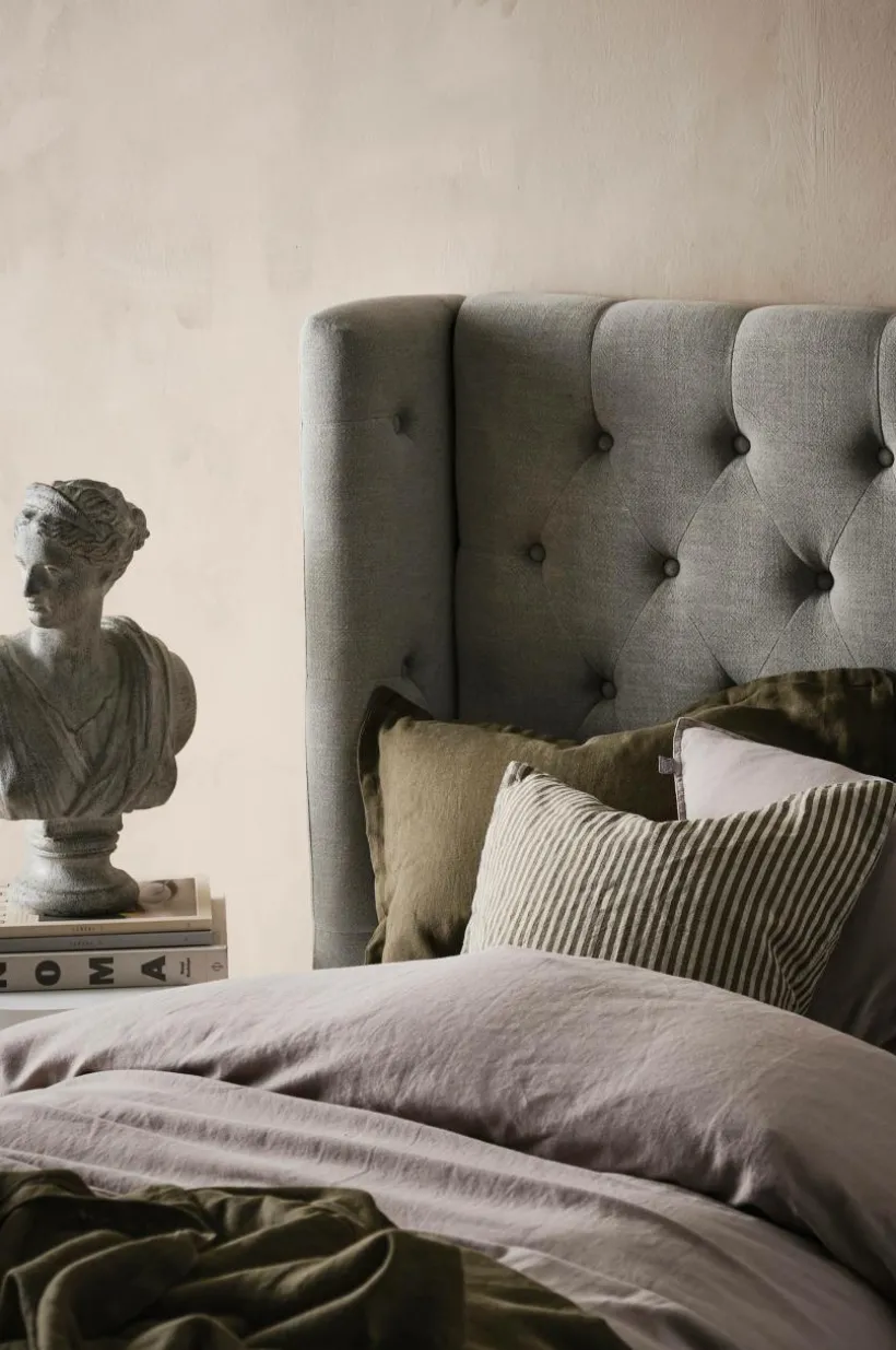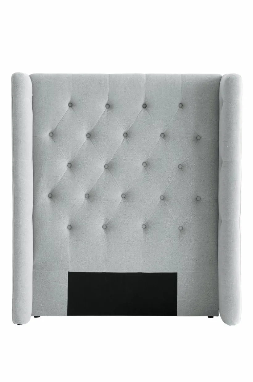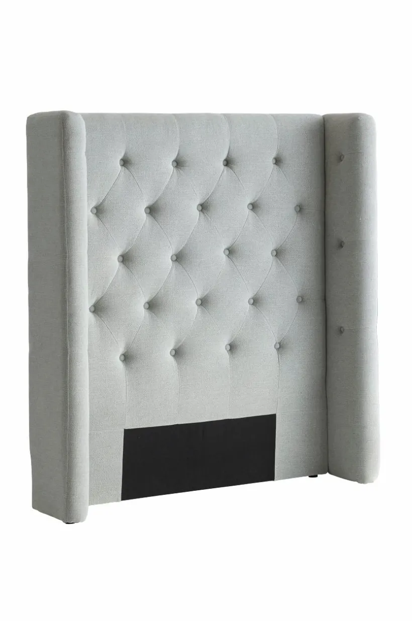 Fristående gavel klädd i linne. Går även att hänga upp på väggen. Skapa lyxig hotellkänsla hemma med en djuphäftad sänggavel med vingar.