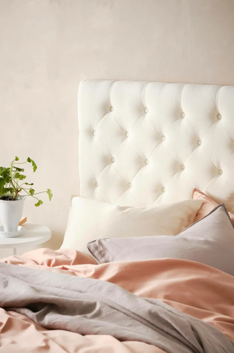 SKENE sänggavel är tillverkad i ett lyxigt linnetyg som ger ditt sovrum en stilfull och elegant touch. Den djupa knapptuftningen ger en klassisk och tidlös känsla som skapar en mysig och inbjudande atmosfär. Denna sänggavel är designad för att ge både komfort och sofistikering och integreras sömlöst med alla sängar, vilket gör den till det perfekta tillskottet för dem som vill ha en touch av hotelllyx i sitt hem.