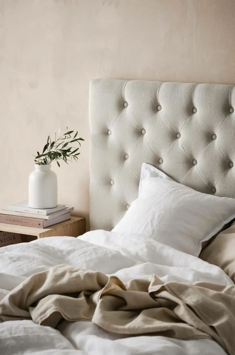 SKENE sänggavel är tillverkad i ett lyxigt linnetyg som ger ditt sovrum en stilfull och elegant touch. Den djupa knapptuftningen ger en klassisk och tidlös känsla som skapar en mysig och inbjudande atmosfär. Denna sänggavel är designad för att ge både komfort och sofistikering och integreras sömlöst med alla sängar, vilket gör den till det perfekta tillskottet för dem som vill ha en touch av hotelllyx i sitt hem.