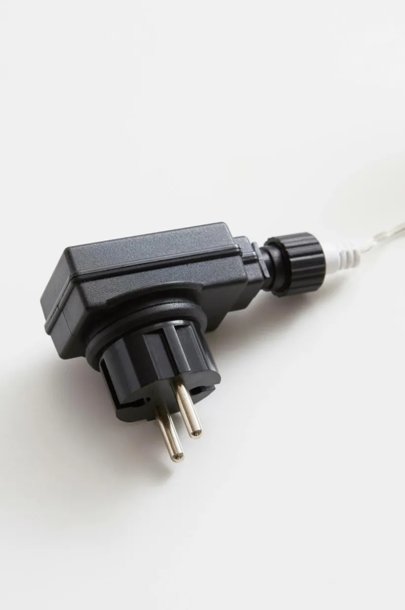 Beskrivning: Dekorationsbelysning med 50 st lampor. 15 cm mellan lamporna. Längd 7,35 m. Transparent sladd. Sladdlängd fram till första lampan 3 m. LED-belysning med transformator ingår. För inom- och utomhusbruk, IP44.