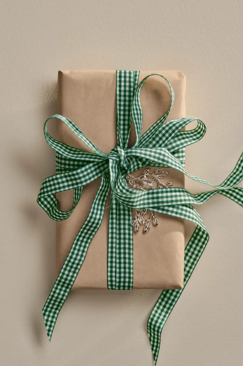 Band för presentförpackning med ett litet rutmönster, perfekt för att lägga till en festlig touch till dina presenter. Perfekt för att skapa vackert inslagna presenter som sticker ut under julgranen.