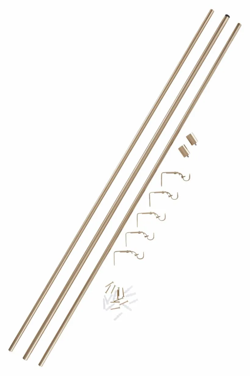 Storlek: Reglerbar 276-385 cm. 3 st 138 cm stänger, ø 16/19 mm. Justerbart väggavstånd ca 9-11 cm. Ändknopp längd 4 cm, ø 2,7 cm.