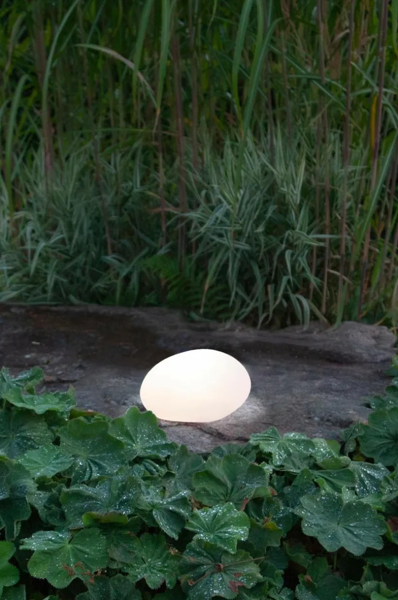 Solcellsdekoration i form av en vit sten. Lyser upp i mörkret med varmvitt sken. Bredd 26,5 cm, höjd 13 cm och djup 20 cm. Ledljuskälla ingår samt batteri ingår till ljusrelät. Medellivslängd 10000 timmar. Total effekt 0,13W. Volt 2,4 V DC.