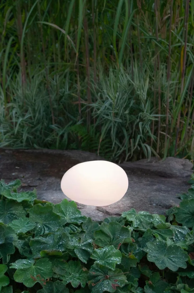Solcellsdekoration i form av en vit sten. Lyser upp i mörkret med varmvitt sken. Höjd 18 cm, bredd 32 cm och djup 26 cm. Ledljuskälla ingår samt batteri ingår till ljusrelät. Medellivslängd ca 10000 timmar. Total effekt 0,13W. Volt 2,4V DC.