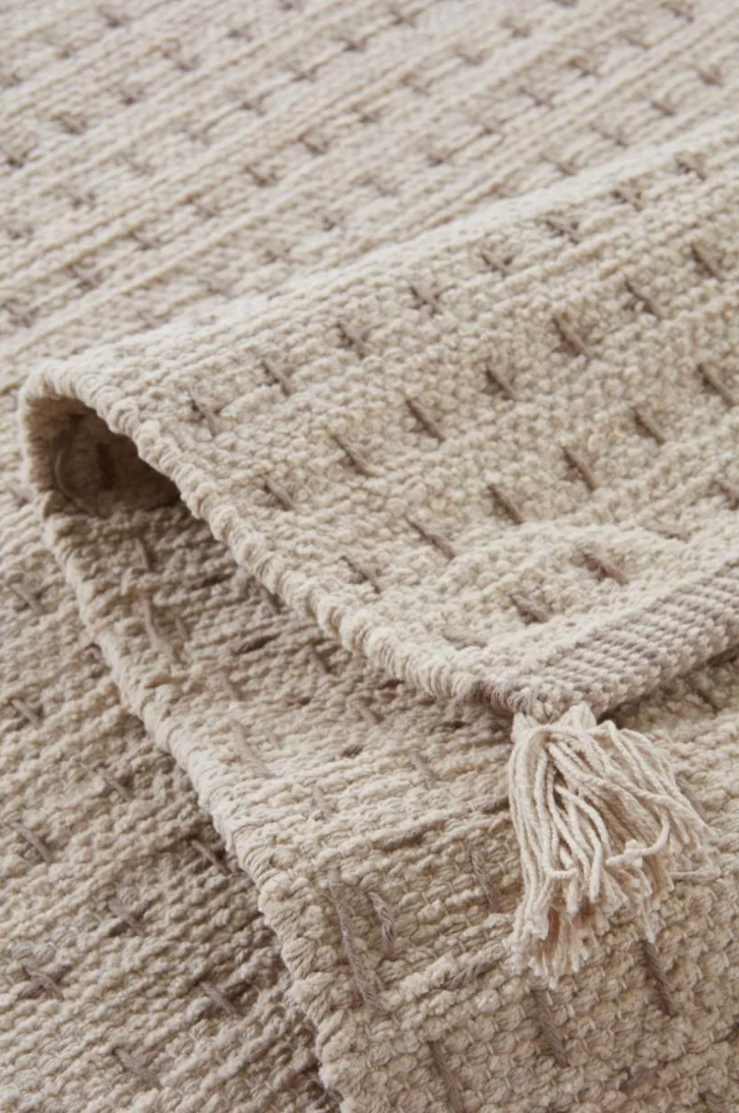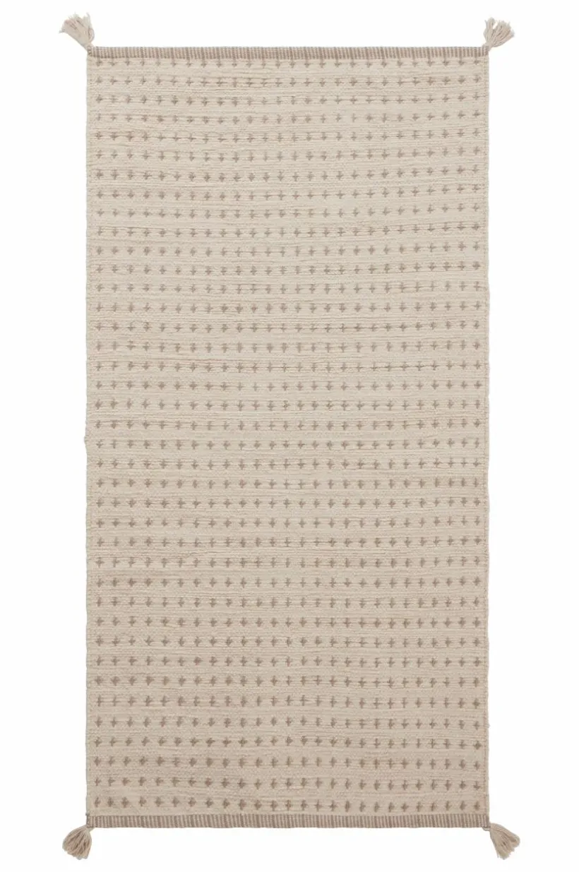 Handvävd matta i mjuk och härlig bomullskvalité. 40% av bomullen är ett chenillegarn som är sammetslikt och extra mjuk. Mattan har vävt prickmönster och en tofs i varje hörn. Denna härliga matta har mjuk lugg och är mysig i barnrummet och gör sig fint överallt där du vill ha en lite mindre, extra mjuk matta. Det fina hantverket gör varje matta unik. Lugghöjd 0,8 cm. Tjocklek 1 cm. 2200 g/m².
