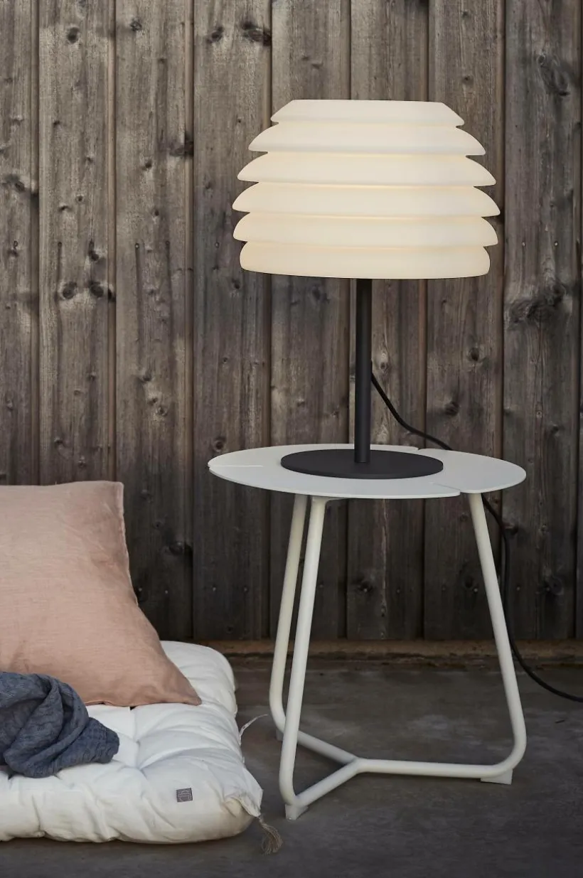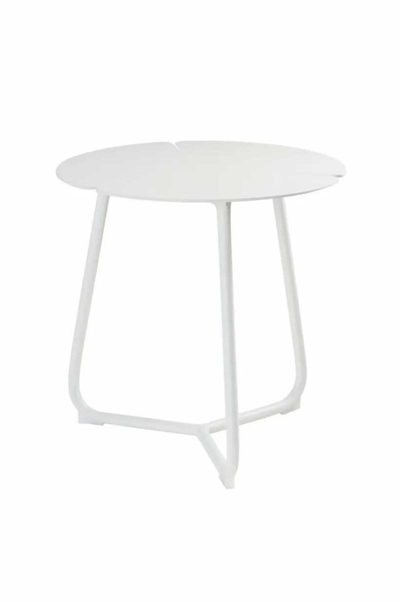 Sidobord av pulverlackerad aluminium med matt yta. Aluminium är ett praktiskt material som har låg vikt och det rostar inte, du kan låta det stå utomhus. Den matta pulverlacken är behaglig utan att reflektera solljuset.