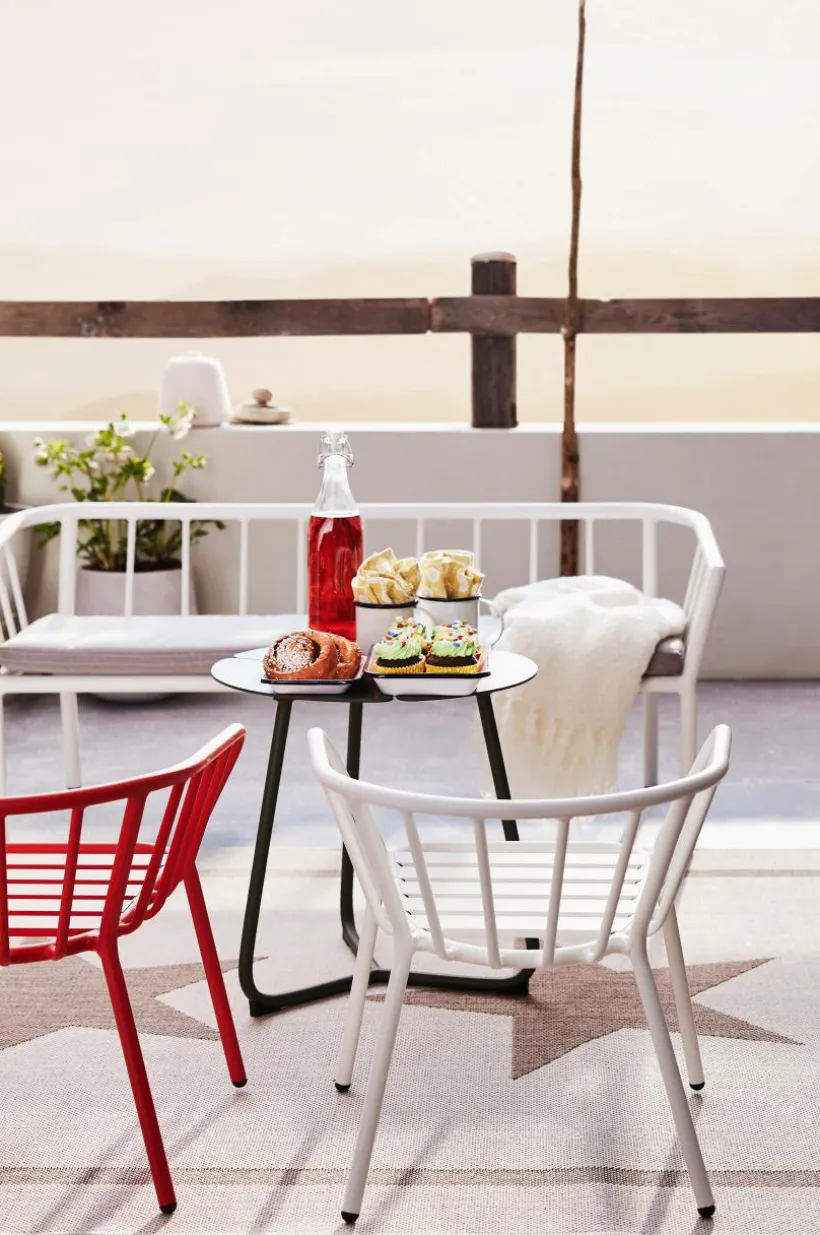 Sidobord av pulverlackerad aluminium med matt yta. Aluminium är ett praktiskt material som har låg vikt och det rostar inte, du kan låta det stå utomhus. Den matta pulverlacken är behaglig utan att reflektera solljuset.