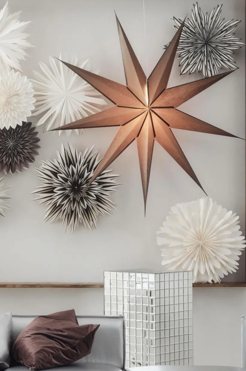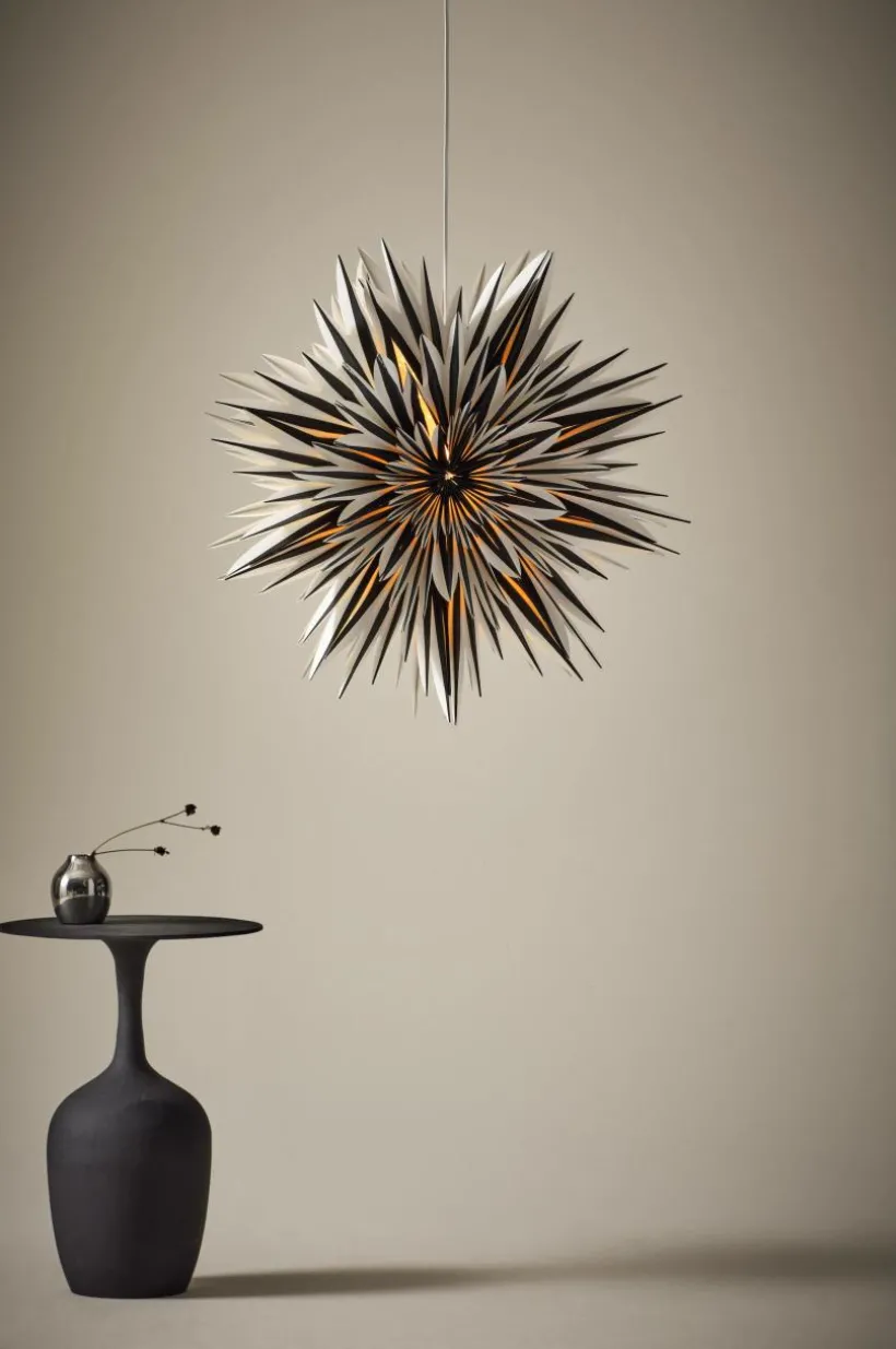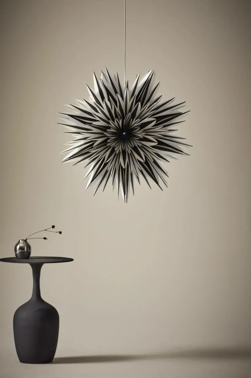 Julstjärna av papper, stjärnan har många uddar i olika längd och flera lager. SPICA är pampig, stor och vacker när den lyser, och ditt vinterfönster blir lika vackert från utsidan som från insidan. Lamphållare med vit plastsladd ingår. Viss montering krävs. Monteringsanvisning medföljer.
