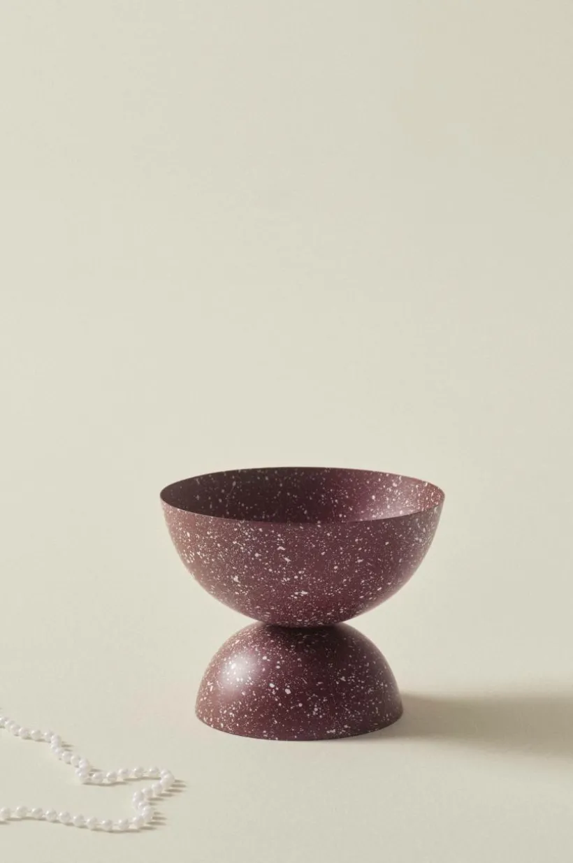 Dekorationsskål av järn med terrazzoinspirerad målning. Skålens form och färg skapar ett fint blickfång.