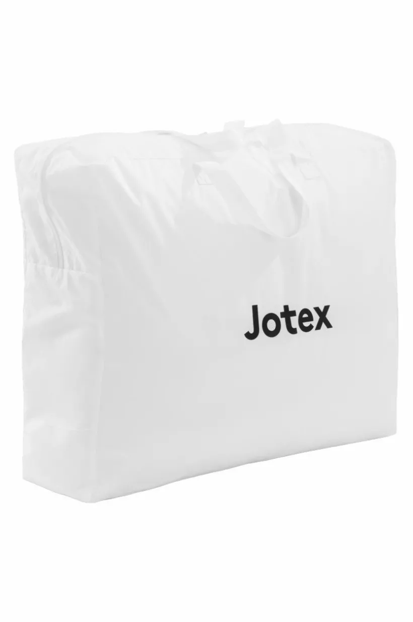 Det vita yttertyget är av tät bomull som inte läcker dun och har silvergrå passpoalkant runt om. Duntäcket levereras i en tygväska av bomull. Vikt fyllning .