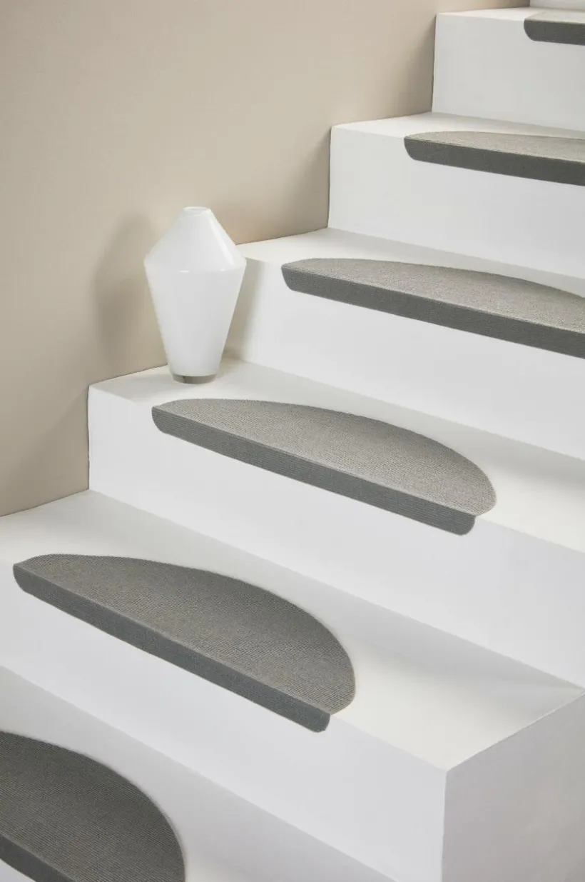 10-pack trappstegsmattor i tuftad polypropylen med självhäftande baksida. Mattorna är enfärgade och har en halvmåneform som passar de flesta trappor. Mattorna har lim på den vikta kanten som håller dem på rätt plats.