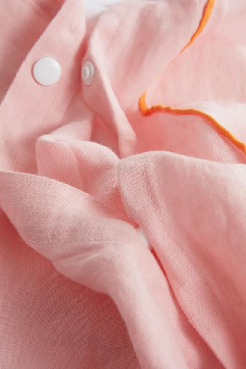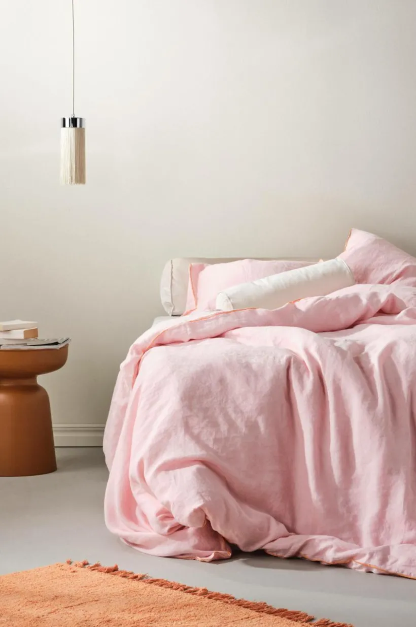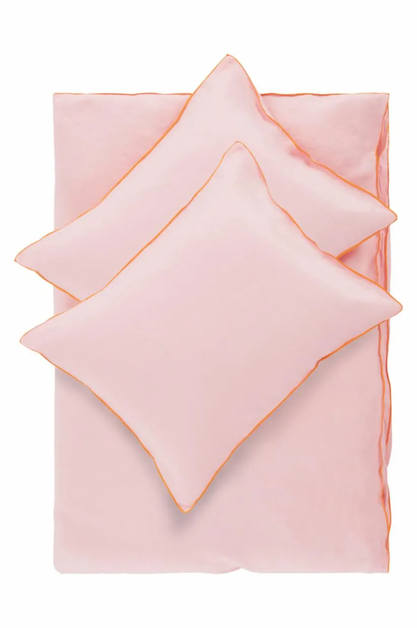 Påslakanset i tre delar med ett extra brett påslakan och två örngott av lin, som tvättas för en extra mjuk känsla. STICH står för schyssta sängkläder i ett tidlöst material. Linnetyget är enfärgat och den snygga overlocksömmen runt om är kontrastfärgad i en pigg färg. Lin är ett fint naturmaterial med speciella egenskaper och härlig känsla. Linne värmer när det är kallt och är svalt att sova i när det är varmt. När linet tvättas får det ännu mjukare struktur som är behaglig mot huden. Öppning i övre hörnen på påslakanet, som underlättar att trä påslakanet över täcket. Knappar för tillslutning i påslakanet. Trådtäthet på 104 tc. (Trådtätheten talar om antalet trådar, thread counts, per kvadrattum i ett tyg. Ju högre trådtäthet desto högre kvalité. Med undantag för linne som ofta vävs glesare för att få den rätta känslan.)