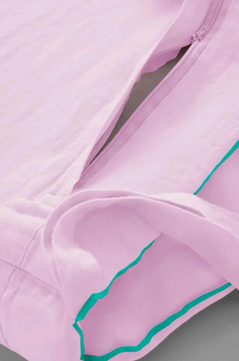 Spjälsängsskydd med yttertyg av lin som tvättas för en extra mjuk känsla. STICH står för schyssta sängkläder i ett tidlöst material. Linnetyget är enfärgat och den snygga overlocksömmen runt om är kontrastfärgad i en pigg färg. Lin är ett fint naturmaterial med speciella egenskaper och härlig känsla. När linet tvättas får det ännu mjukare struktur som är behaglig mot huden. Fyllning av polyester med mjuk skumgummikärna.