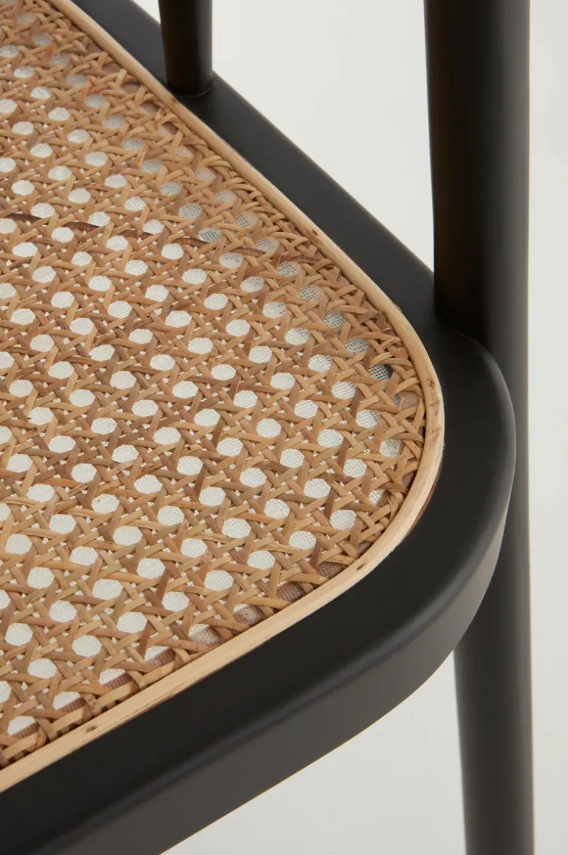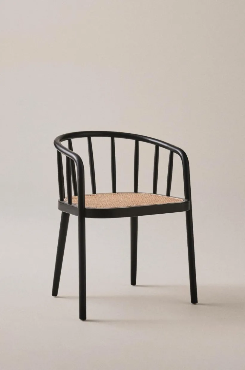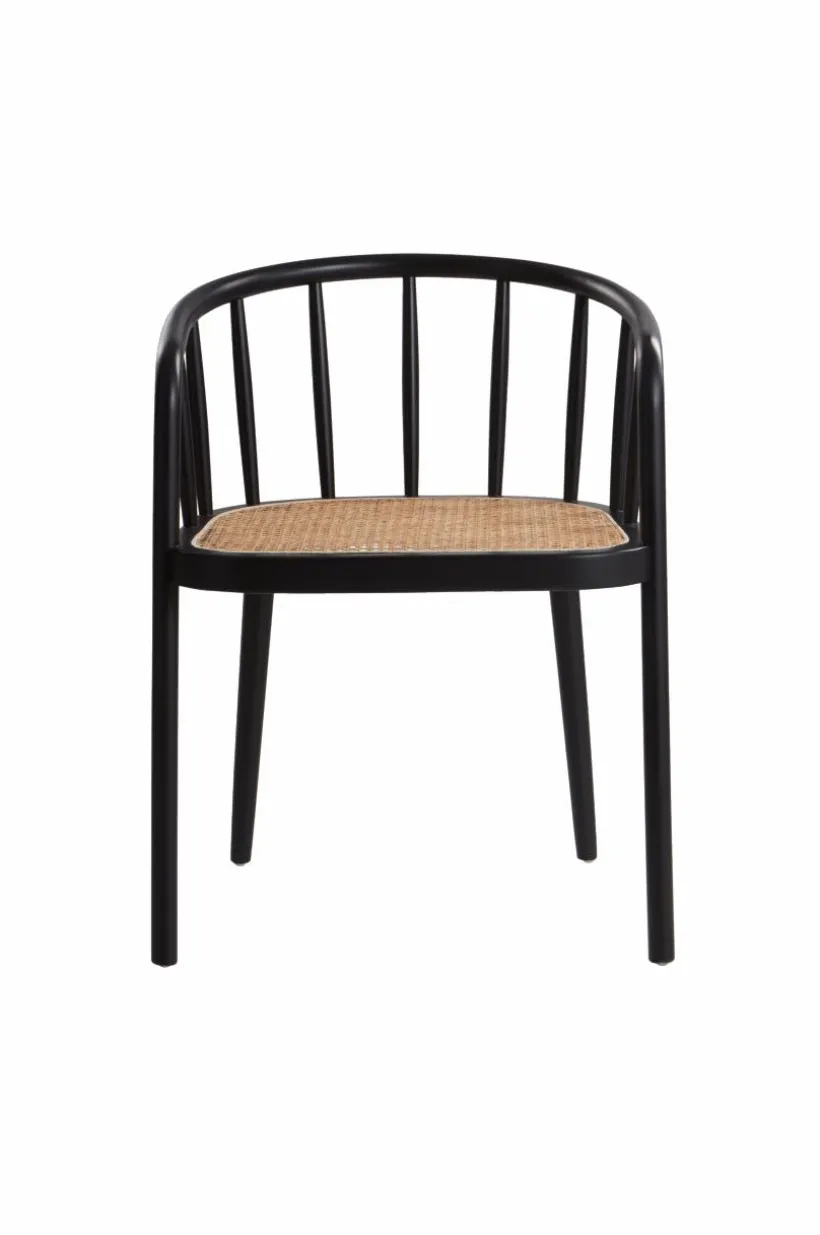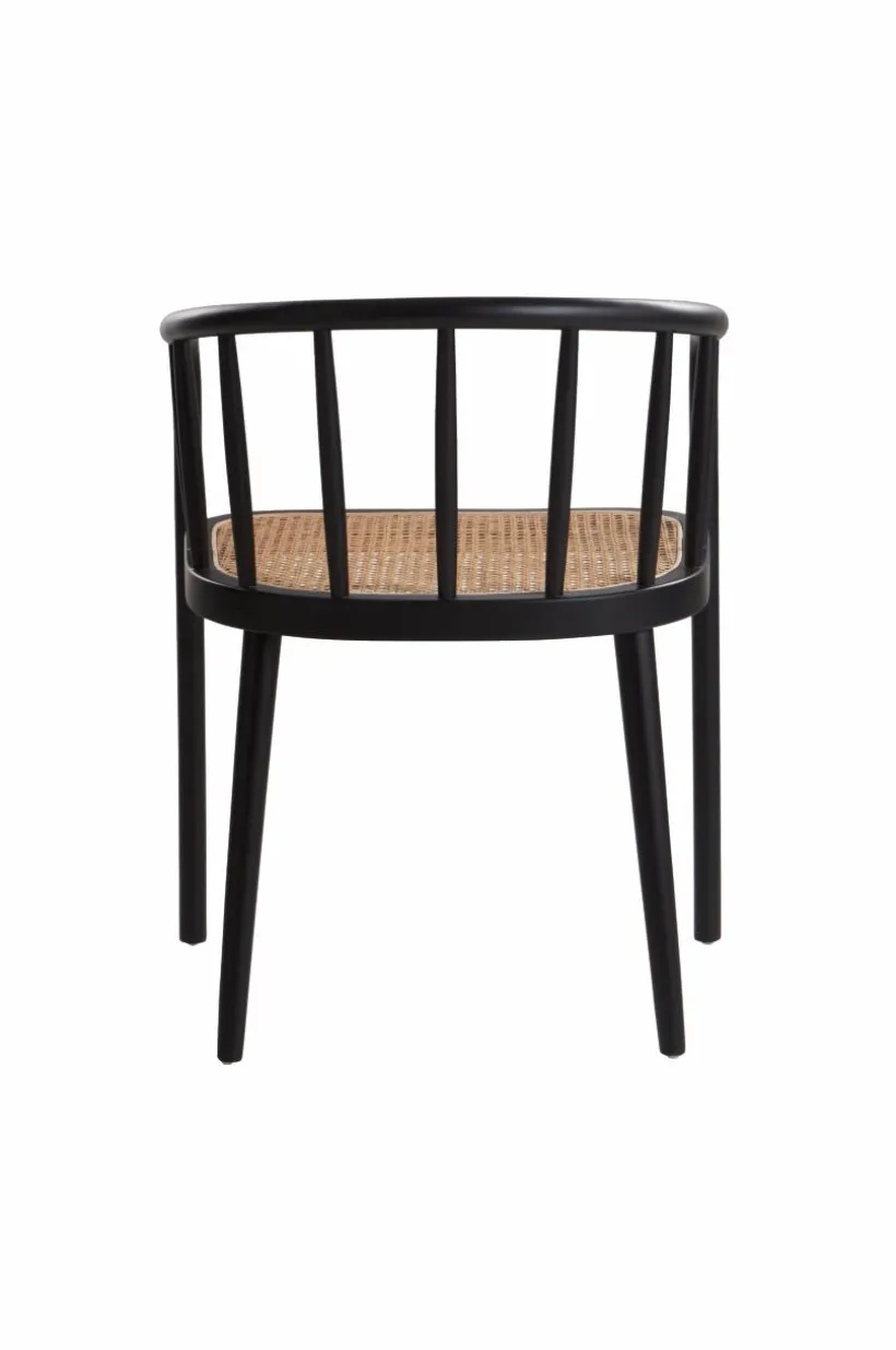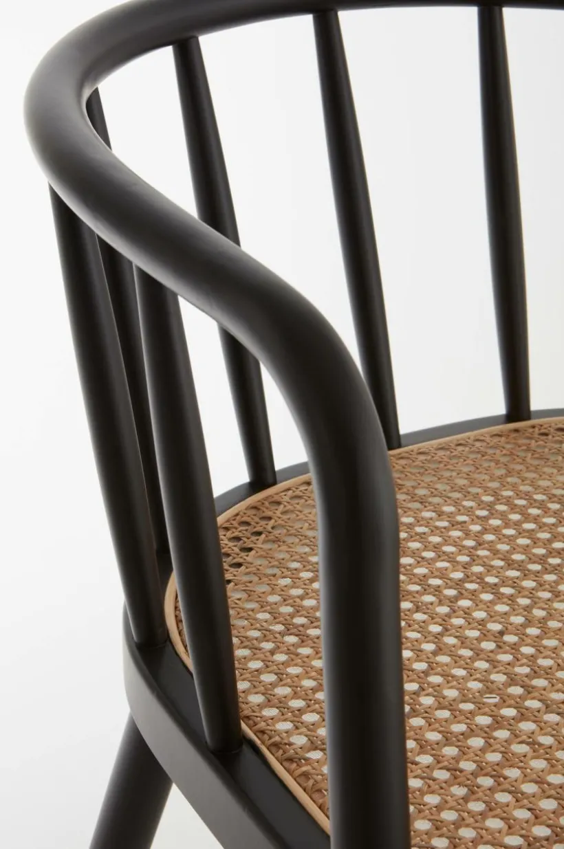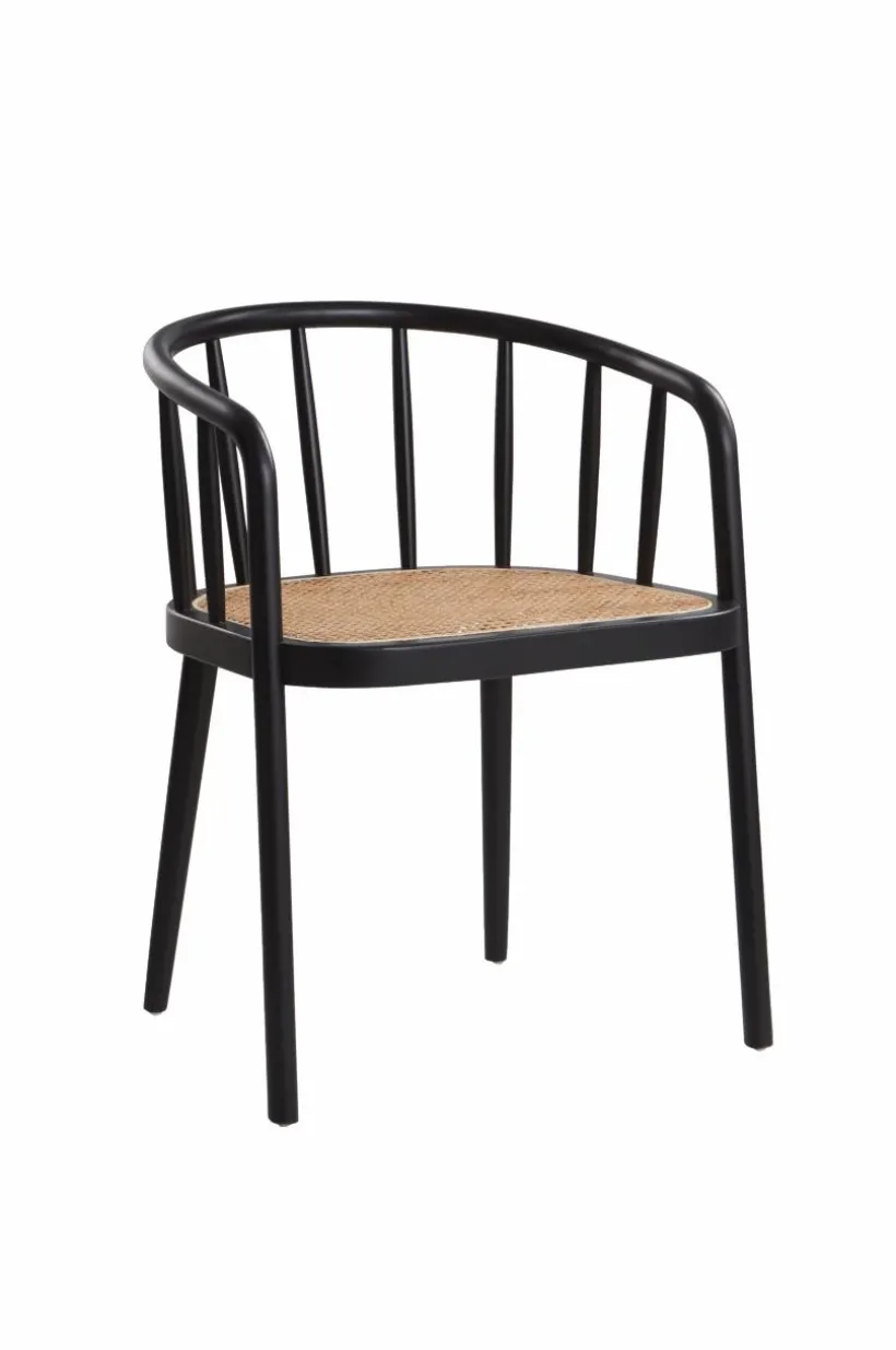 Karmstol av vitsåpad ek eller svart bok med sits av rotting. STOCKSUND är en bekväm stol med mjuka linjer och formad rygg.