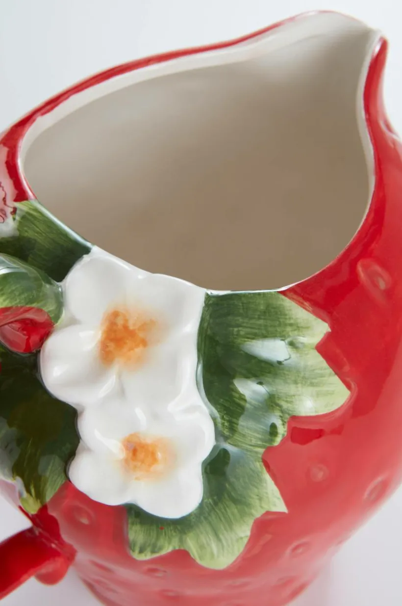 Kanna av dolomitporslin. Kannan med sitt vackra handtag har härlig inspiration från jordgubben och dess fina planta. Handtaget är greppvänligt och pipen gör det lätt att hälla. Kannan är även glaserad invändigt.
