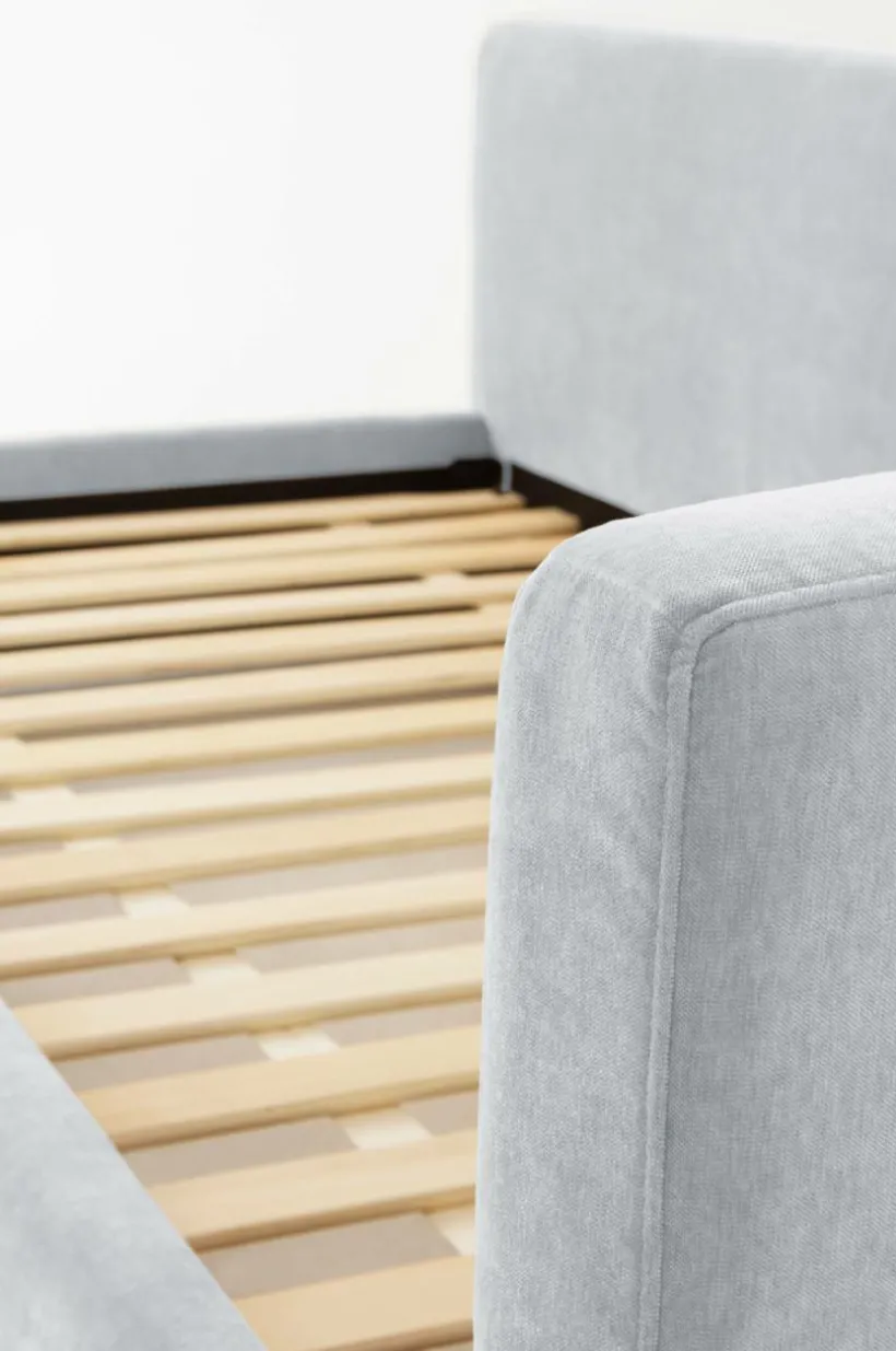 Sängram SUZUKI för barn, storlek 90x200cm, kombinerar komfort och modern design. Chenilletygets överdrag ger en mjuk känsla, medan den vadderade ramen garanterar säkerhet och mysfaktor. Den högre ramen på toppen och sidan ger extra stabilitet. Den här sängstommen är perfekt för barn och är utformad för att komplettera alla moderna barnrum och erbjuder både funktionalitet och stil. En perfekt blandning av praktiska och estetiska egenskaper för ditt barns sovrum.