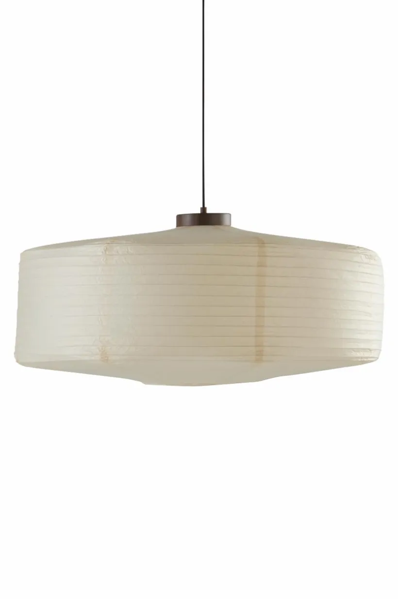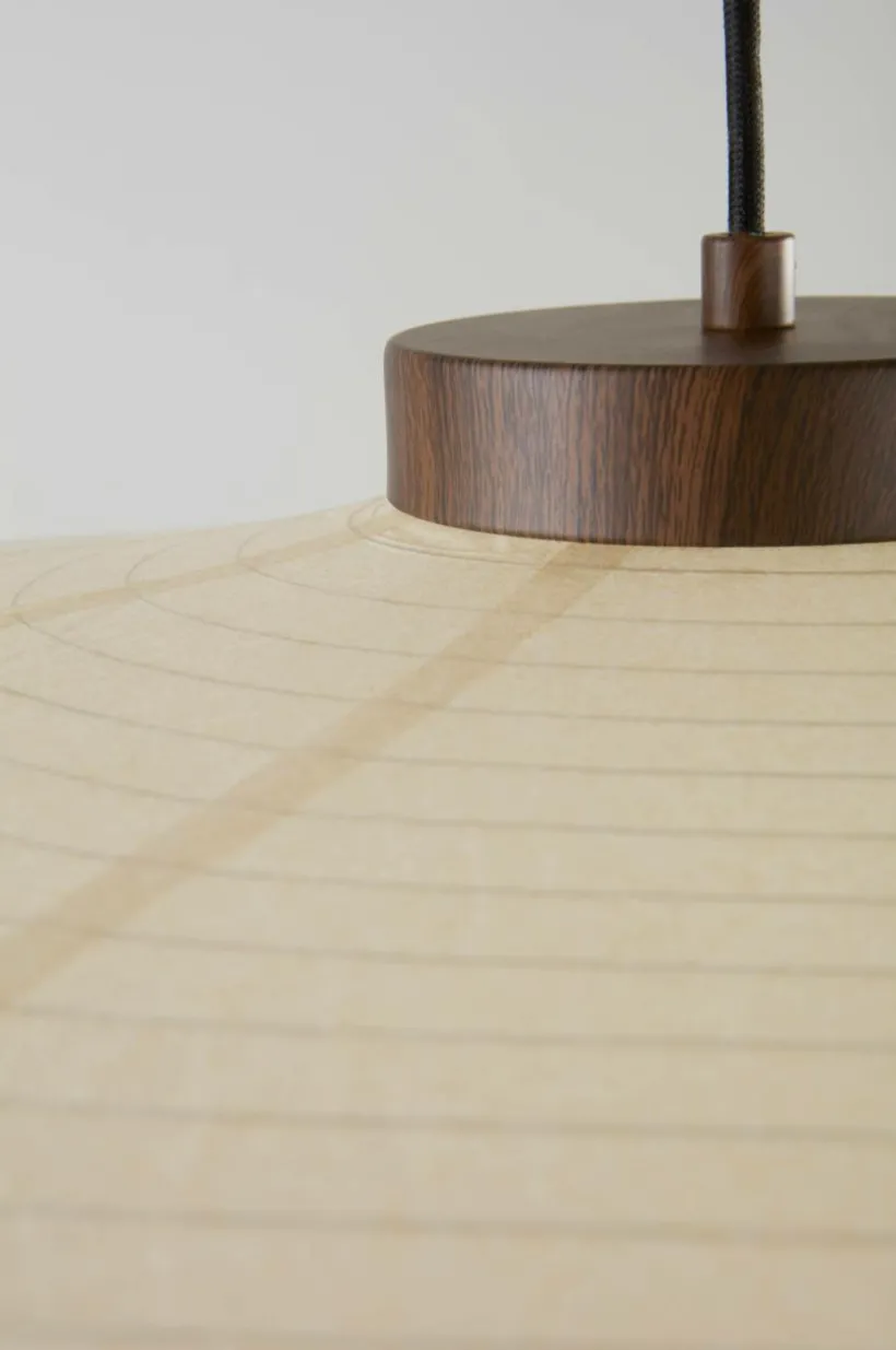 SVEA taklampa har en voluminös rispappersskärm som ger en molnliknande mjukhet till alla rum. Basen, tillverkad av metall med en träliknande finish, tillför en jordnära elegans. Asiatiskt inspirerad design möter retrocharm och skapar ett tidlöst statement. Lampan avger ett mjukt, varmt sken, perfekt för mysiga kvällar. En textilklädd sladd ger en extra touch av lyx och gör lampan till en fängslande mittpunkt.