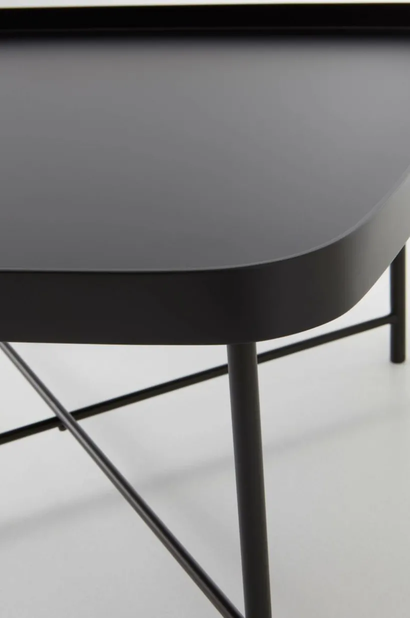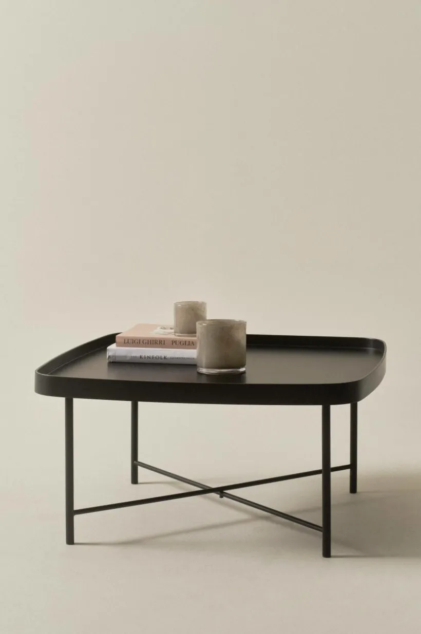 Kvadratiskt soffbord med smäckra ben av stål och bordsskiva av FSC-märkt MDF. Bordsskivan har matt och mjuk svartlackerad yta. Bordsskivan har en liten kant runt om som snygg detalj. Underredet är pulverlackerat i matchande färg. TACOMA matchar det mesta och är lite kaxigt i stilen. Viss montering krävs. Monteringsanvisning medföljer.