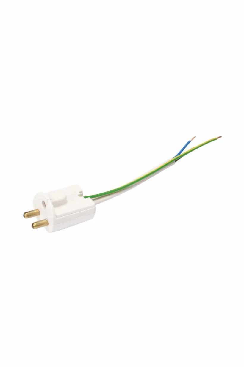 Jordad takplugg i traditionellt utförand för plintanslutning. Sladdlängd 14 cm. Denna är jordad (klass 1) och kan endast användas med jordade lampor. För inomhusbruk.