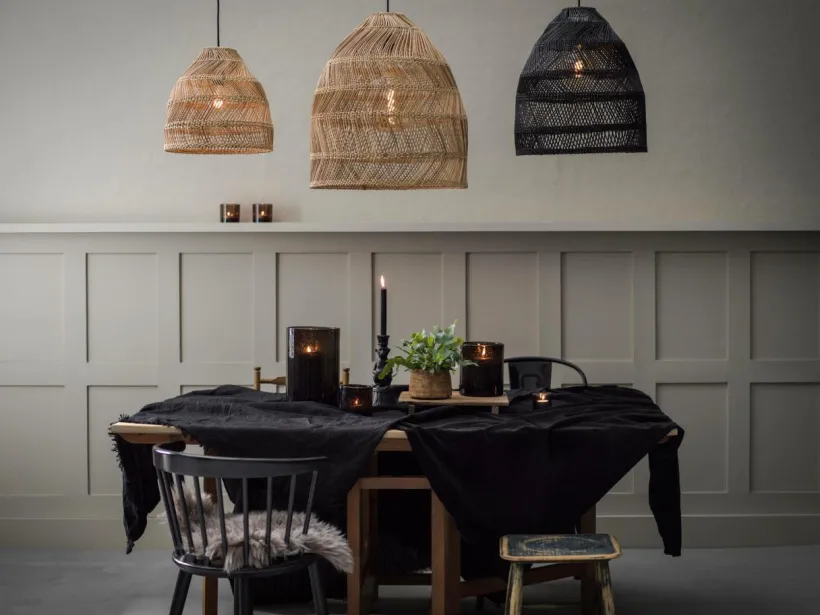 Maja takskärm i en vacker tvinnad naturfärgad rotting. Passar lika bra utomhus, i växthus och uterum som inomhus. Svart lamphållare och takkopp samt plastsladd på 1,2 m ingår, men om du ska hänga den utomhus behöver du köpa till takupphänge och sladd för utomhusbruk. Tänk också på att den får en patina av vädret om den hängs ute. E27 Ring. Höjd 59,5 cm, bredd 53 cm och djup 53 cm. Takkontakt ingår ej på grund av nytt EU direktiv. De finns att beställa separat. Svart plastsladd 1,2 meter.
