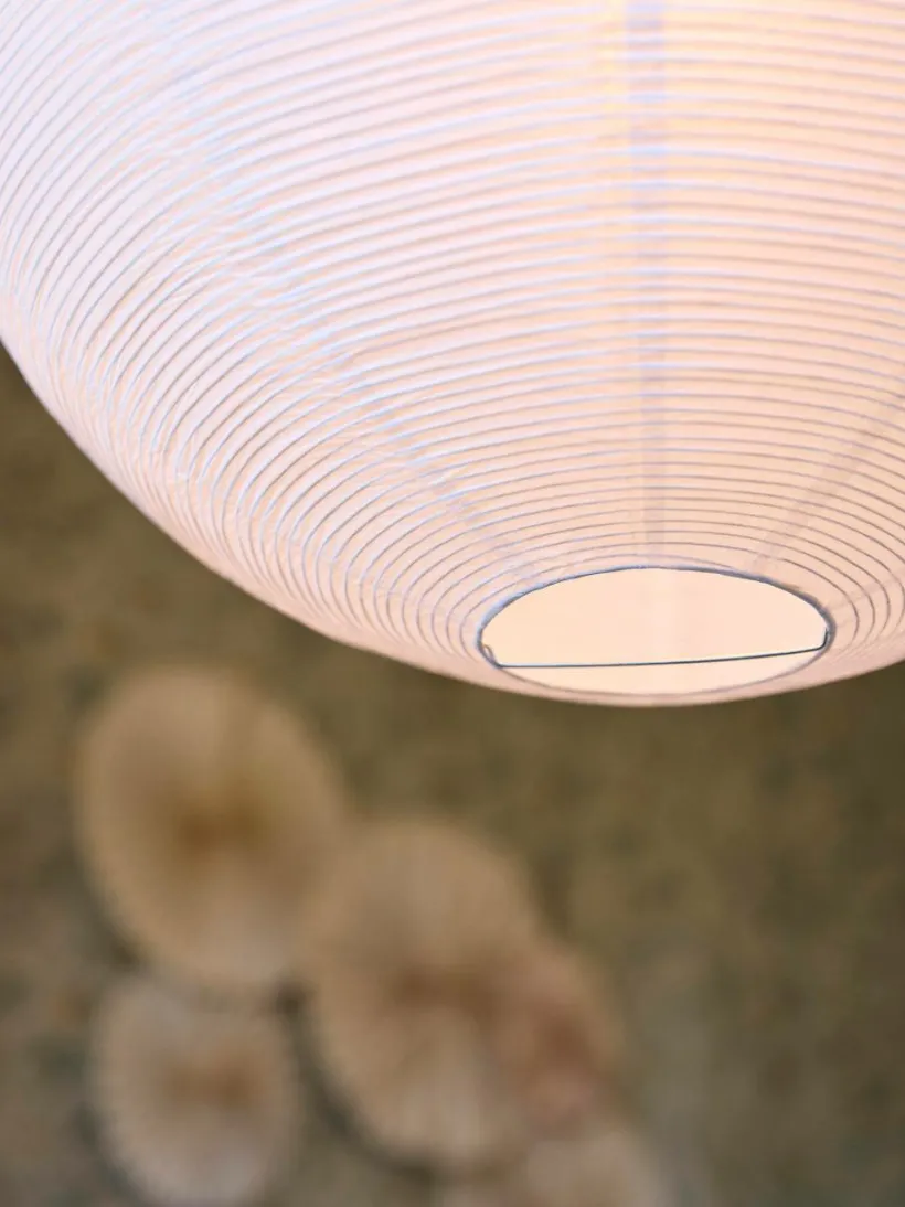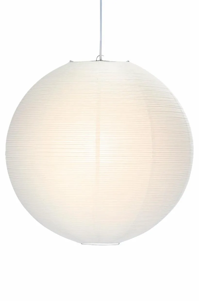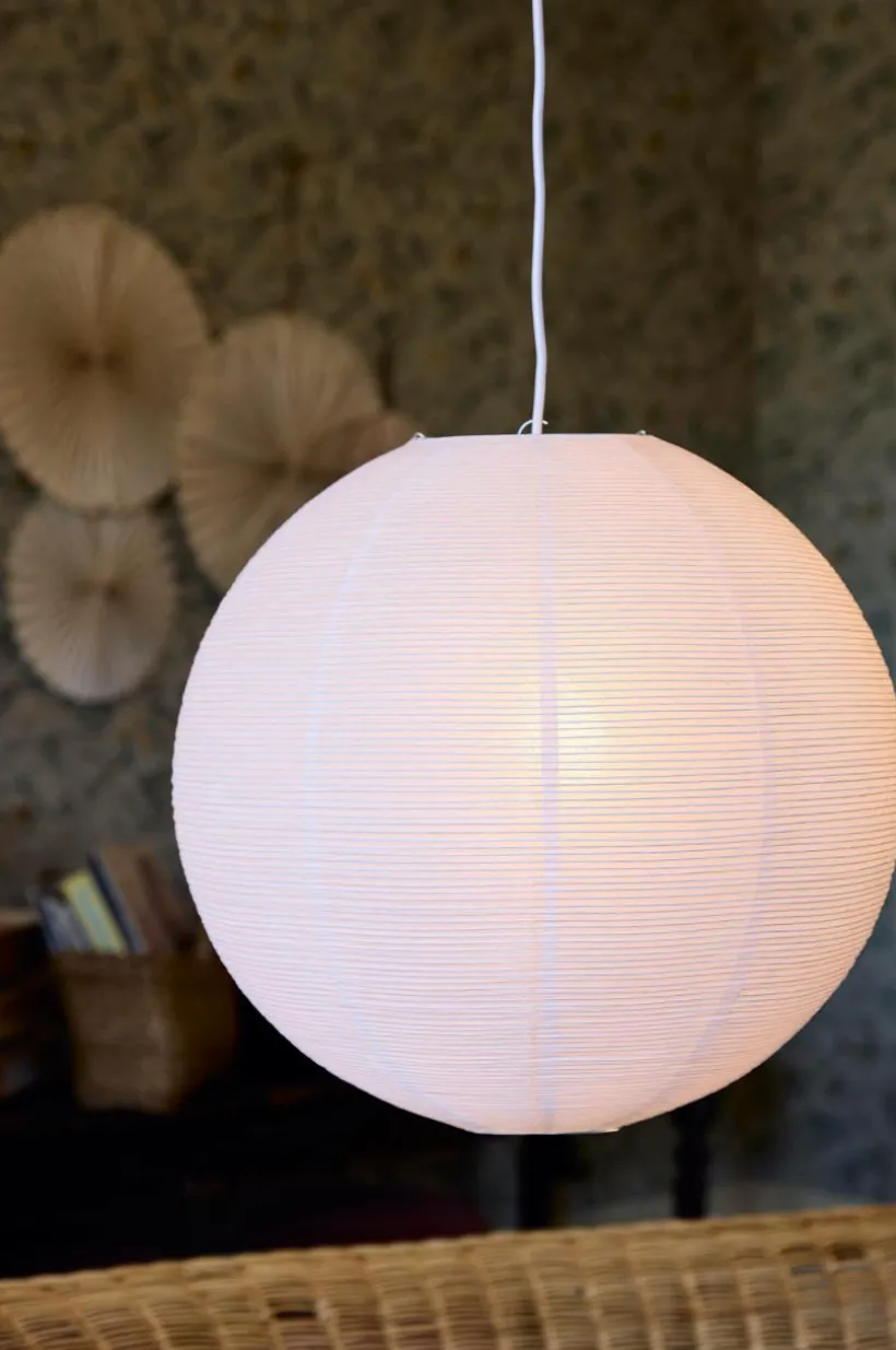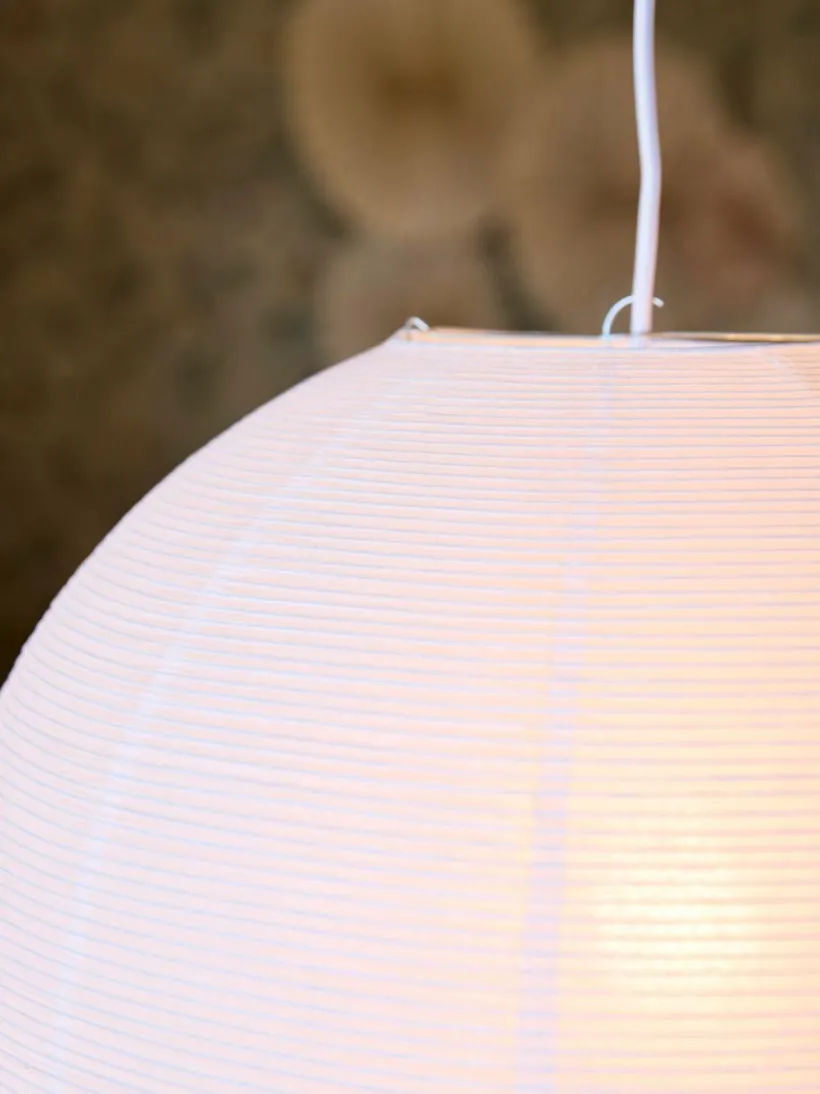 Rispappersskärm haru med tät oregelbunden metalltråd som skapar ett vackert mönster. Haru är rund 50cm i diameter och höjd 50cm. Levereras utan lampsladd. Spänns ut till sin form med hjälp av en metallexpander som man även fäster lampsladden i.
