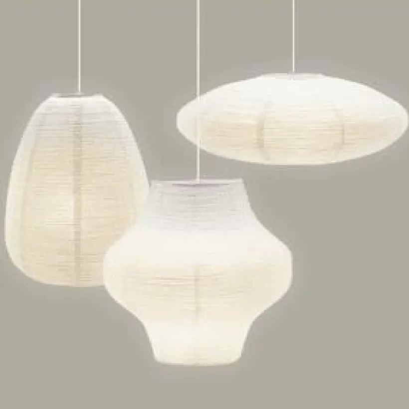 Rispappersskärm Sani med tät oregelbunden metalltråd som skapar ett vackert mönster. Sani är kalebassformad 44,5 cm i diameter och höjd 42,5 cm. Levereras utan lampsladd. Spänns ut till sin form med hjälp av en metallexpander som man även fäster lampsladden i.