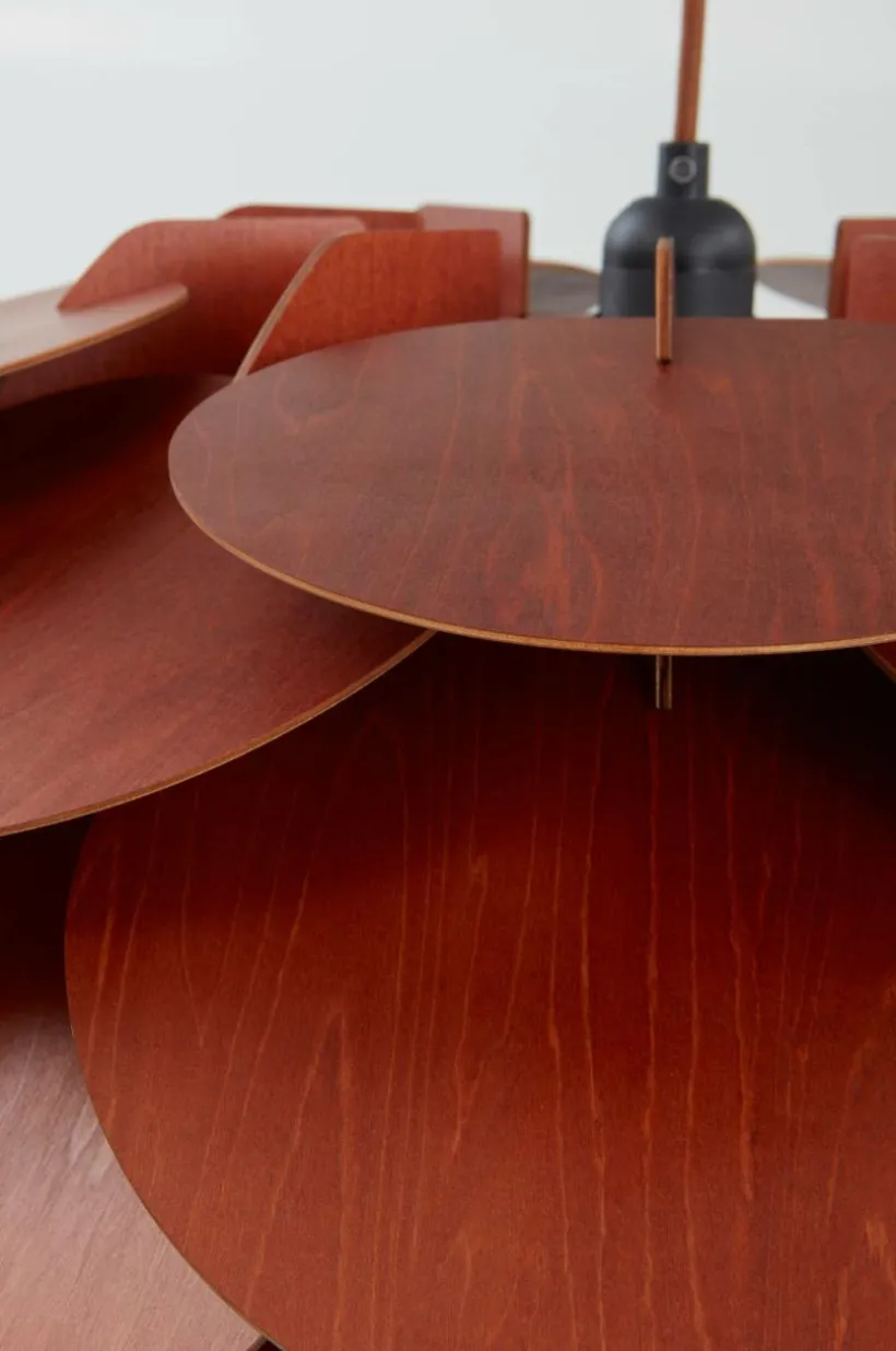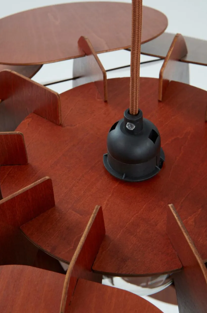 TALL är en underbar taklampa i nordisk stil, tillverkad i brun plywood med rå, naturlig känsla. Lampskärmen består av runda plattor som sätts samman till en magisk lampa. Lampan har en vit textilsladd, vilket ger mer känsla till lampan och den är ändå diskret i färgen. Takkopp av plast. Lampan är jordad, klass 1. På grund av EU-regler behövs en separat takkontakt i vissa länder. Takkontakten ska vara jordad (klass 1) och köps separat. Lampan levereras omonterad. Monteringsanvisning medföljer.