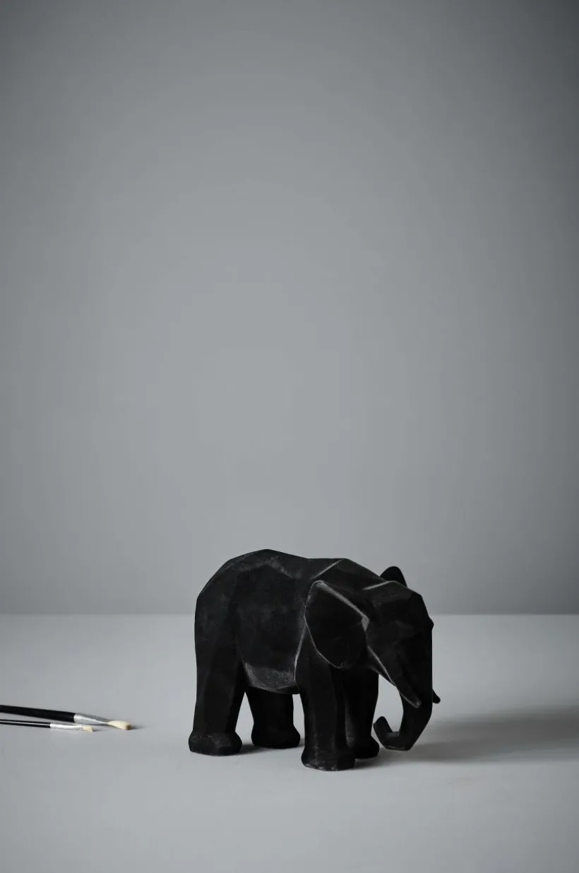 Dekorationsfigur av polyresin, en fint formad elefant med stilistiska drag.