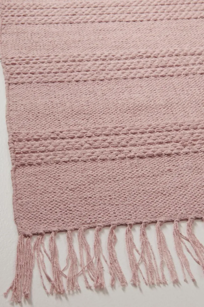 Enfärgad matta av bomull med vävd strukturrand ton-i-ton och fransar längs kortsidorna. En klassisk bomullsmatta som passar lika fint i köket som i barnkammaren, hallen eller tvättstugan. TANYA blir en härlig färgklick och rummet får en ny utstrålning. Franslängd 8 cm. Tjocklek 5 mm.