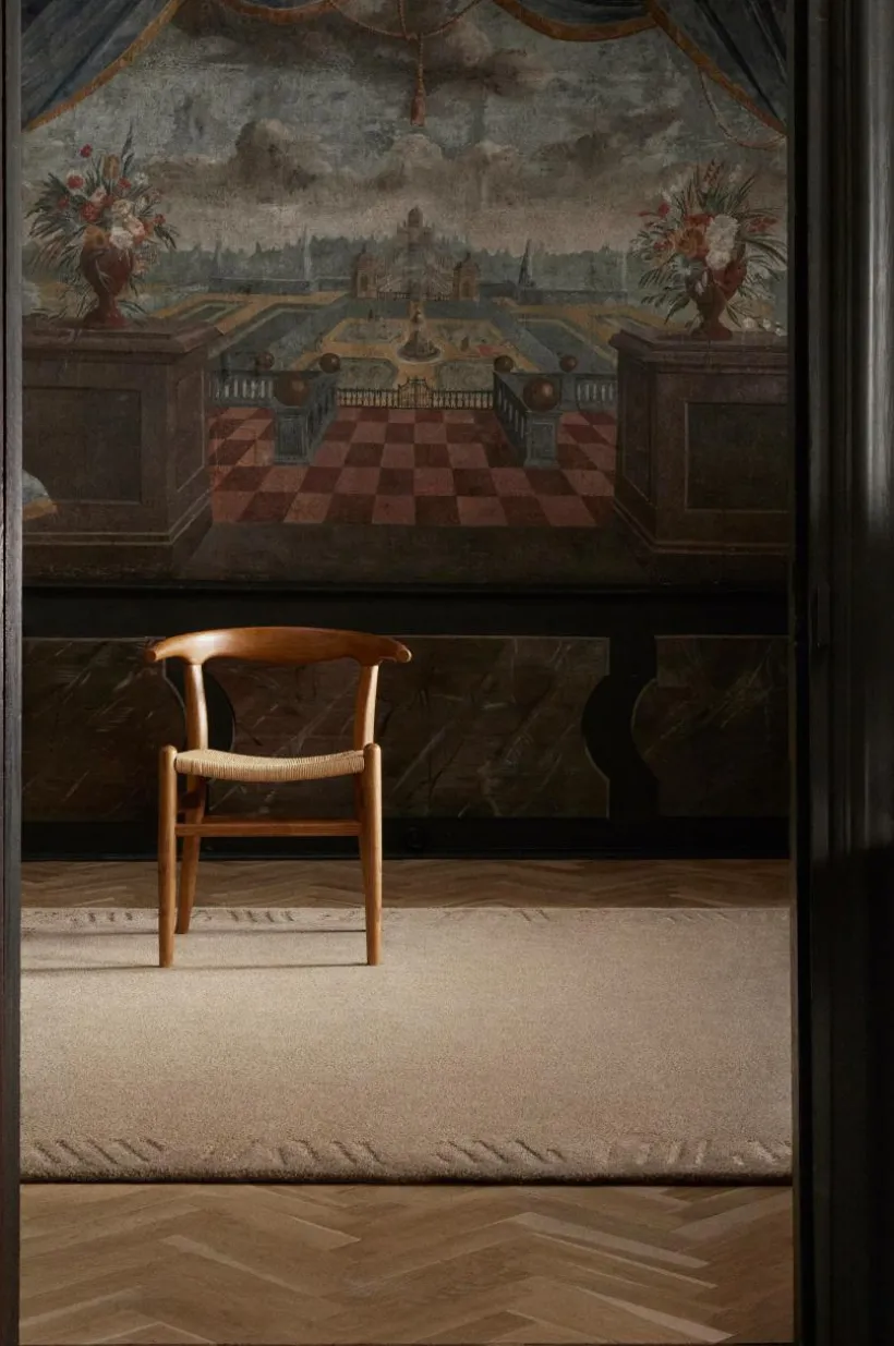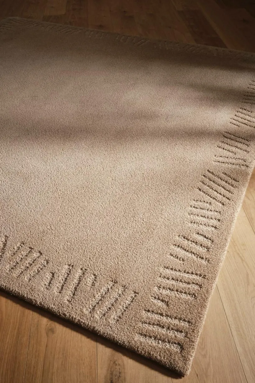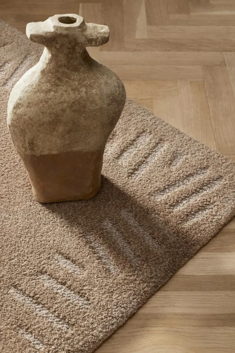 Garnet är en härlig blandning av ull och lin som har melerad effekt vilket ger en naturlig känsla och skön balans. Mattan har skuren lugg med mönster av öglor som skapar en bård runt om mattan. Ullen kommer från Nya Zealand och linet kommer från Frankrike. Både ull och lin är fina naturmaterial, ullen värmer på ett skönt sätt och är naturligt smutsavvisande.
