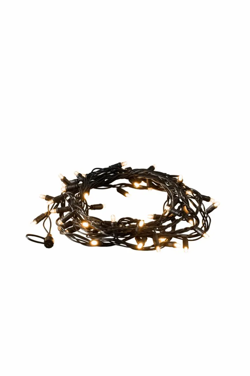 Tillägsslinga med 100 amberfärgade led för utomhusbruk. Robust soft cable. Drivs av en 31v transformator med inbyggd dimmer. Anslutningssladden är 10,20 m. Systemet går att bygga ut till 1200 led-lampor eller 120 m.