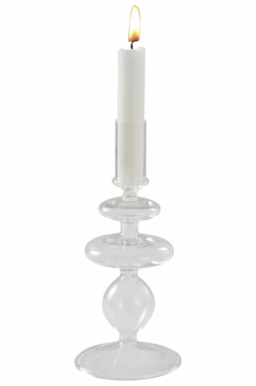 Ljusstake av glas i fin, retroinspirerad form. Ljusstaken TIMOTEJ är handgjord och kommer i vackra färger. Det fina hantverket gör varje ljusstake unik. Ljus medföljer ej.