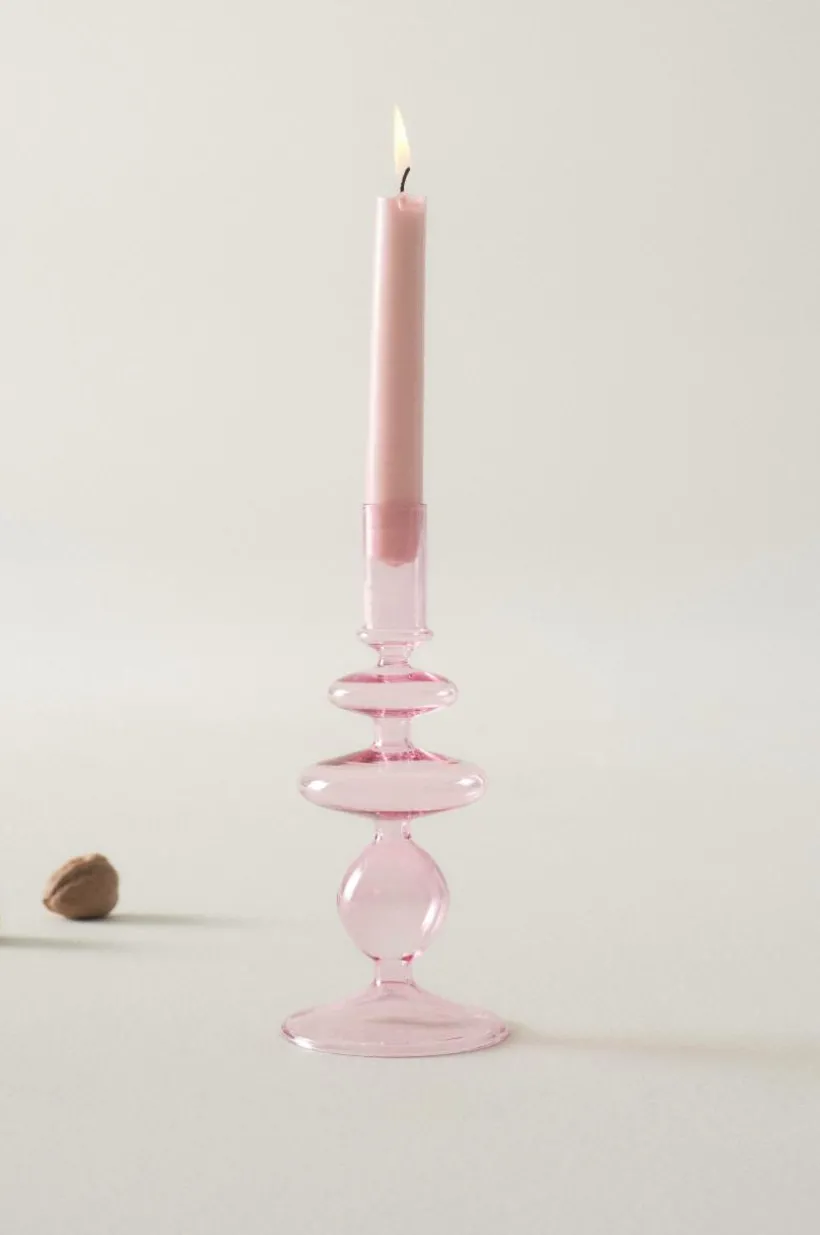 Ljusstake av glas i fin, retroinspirerad form. Ljusstaken TIMOTEJ är handgjord och kommer i vackra färger. Det fina hantverket gör varje ljusstake unik. Ljus medföljer ej.