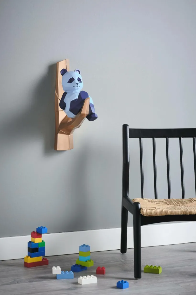 Väggdekoration av polyresin i form av en fin panda på en gren. Hål på baksidan för upphängning.