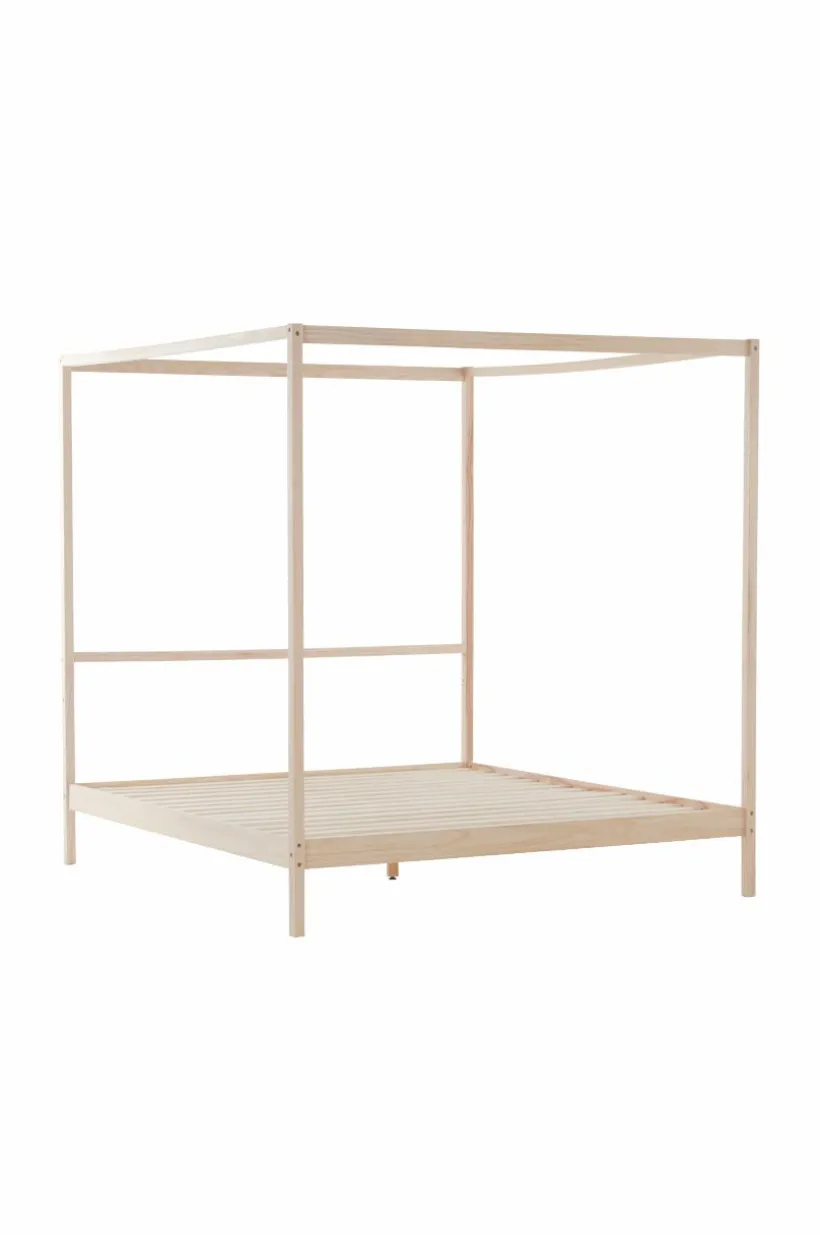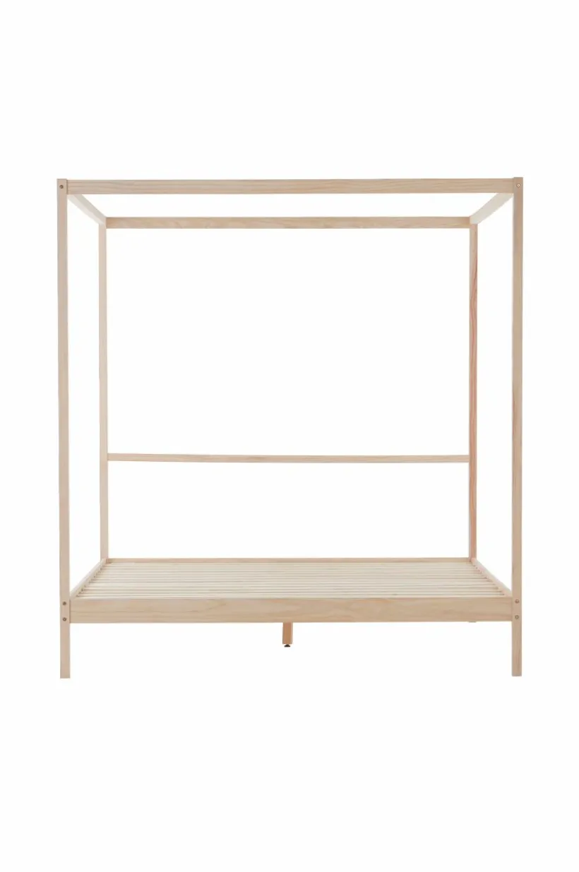 Storlek: Bredd: 168 cm, längd: 208 cm, höjd sänghimmel 200 cm. Frihöjd under möbel: ca 17 cm. Passar med resårmadrass eller vanlig madrass med bredd 160 cm eller 2×80 cm.