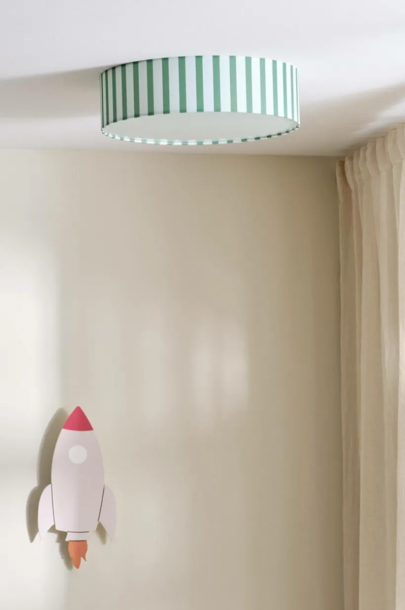 TOLLO MINI taklampa ger ett fantasifullt sken till alla barnrum. Den randiga tygskärmen sprider ett lekfullt ljus som gör varje kväll till ett äventyr.