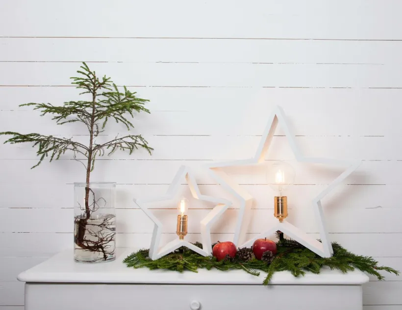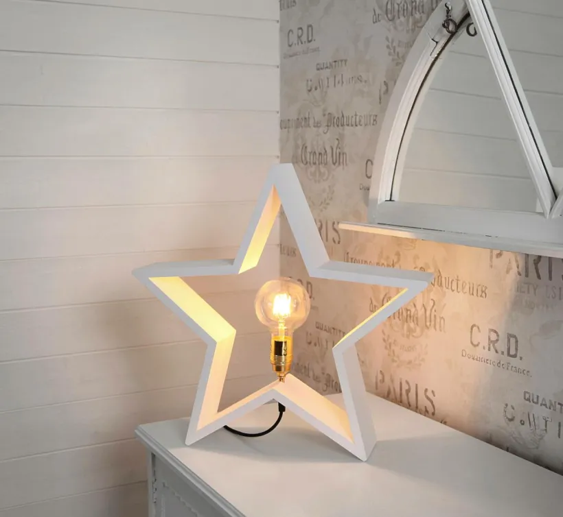 Mått: Bredd 52 cm. Djup 10 cm. Höjd 52 cm. Trästjärna Lysekil. Svart textilsladd 1,8 m 230V. E27 sockel. Ljuskälla ingår inte.