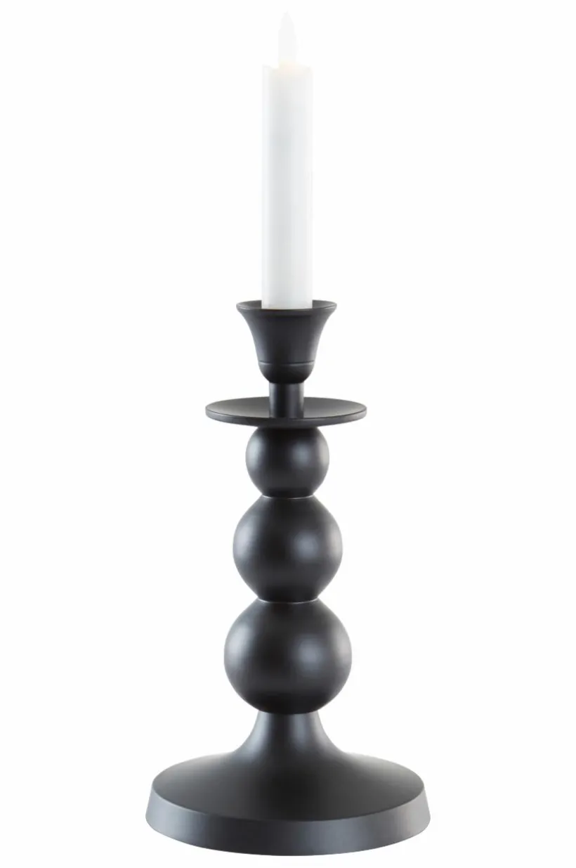 Ljusstake av aluminium. Den fina, klassiska modellen ändrar karaktär med ytbehandlingen. Den med silverfärgad plätering känns lyxigt elegant. Den mattsvarta får en touch av nordisk stil och folklore. Den svarta med blank yta stämmer väl in i en ung, trendig stil. De färgstarka ljusstakarna signalerar glädje. Ljus medföljer ej.
