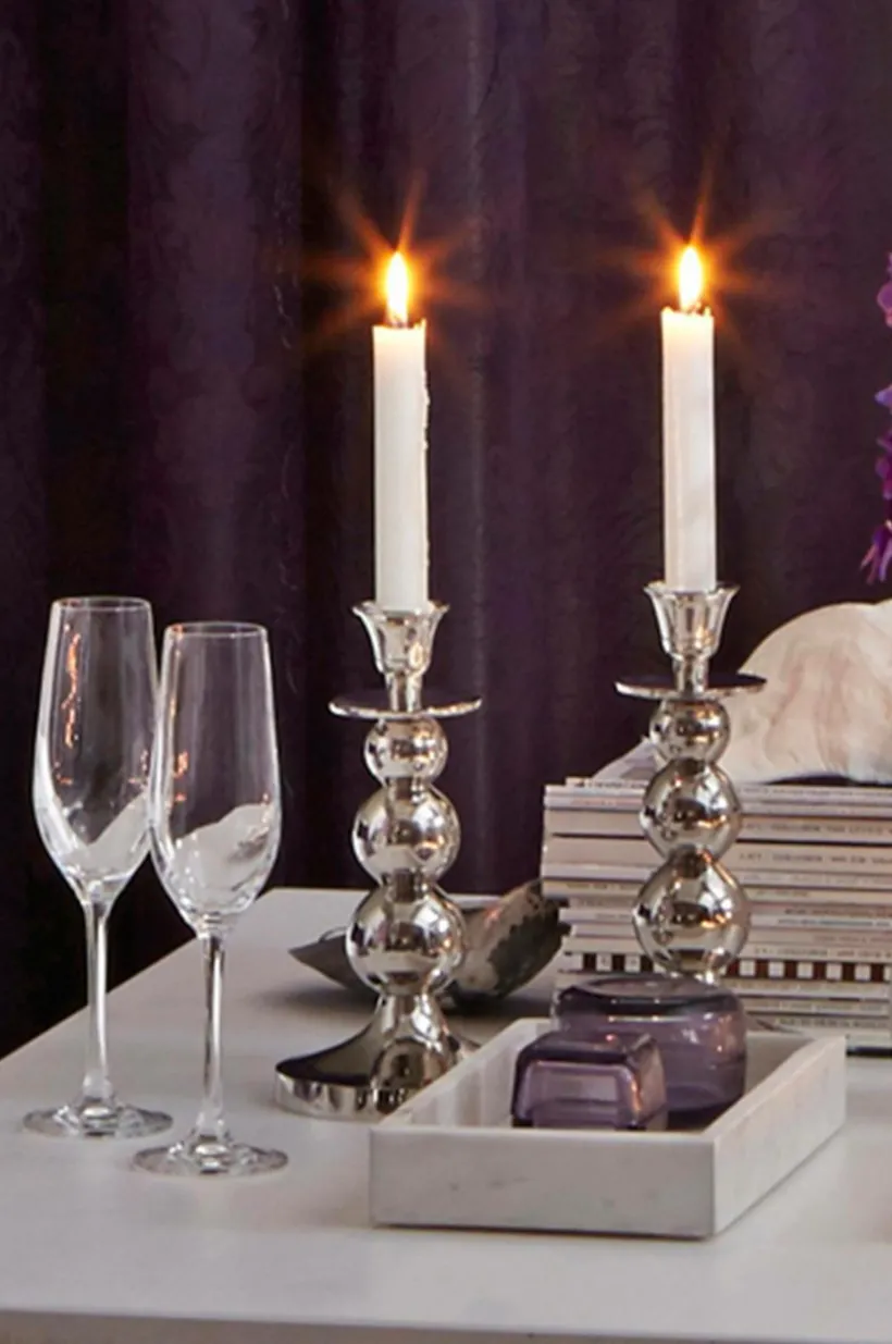 Ljusstake av aluminium. Den fina, klassiska modellen ändrar karaktär med ytbehandlingen. Den med silverfärgad plätering känns lyxigt elegant. Den mattsvarta får en touch av nordisk stil och folklore. Den svarta med blank yta stämmer väl in i en ung, trendig stil. De färgstarka ljusstakarna signalerar glädje. Ljus medföljer ej.