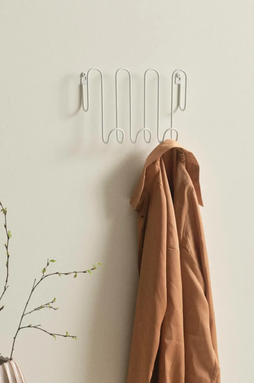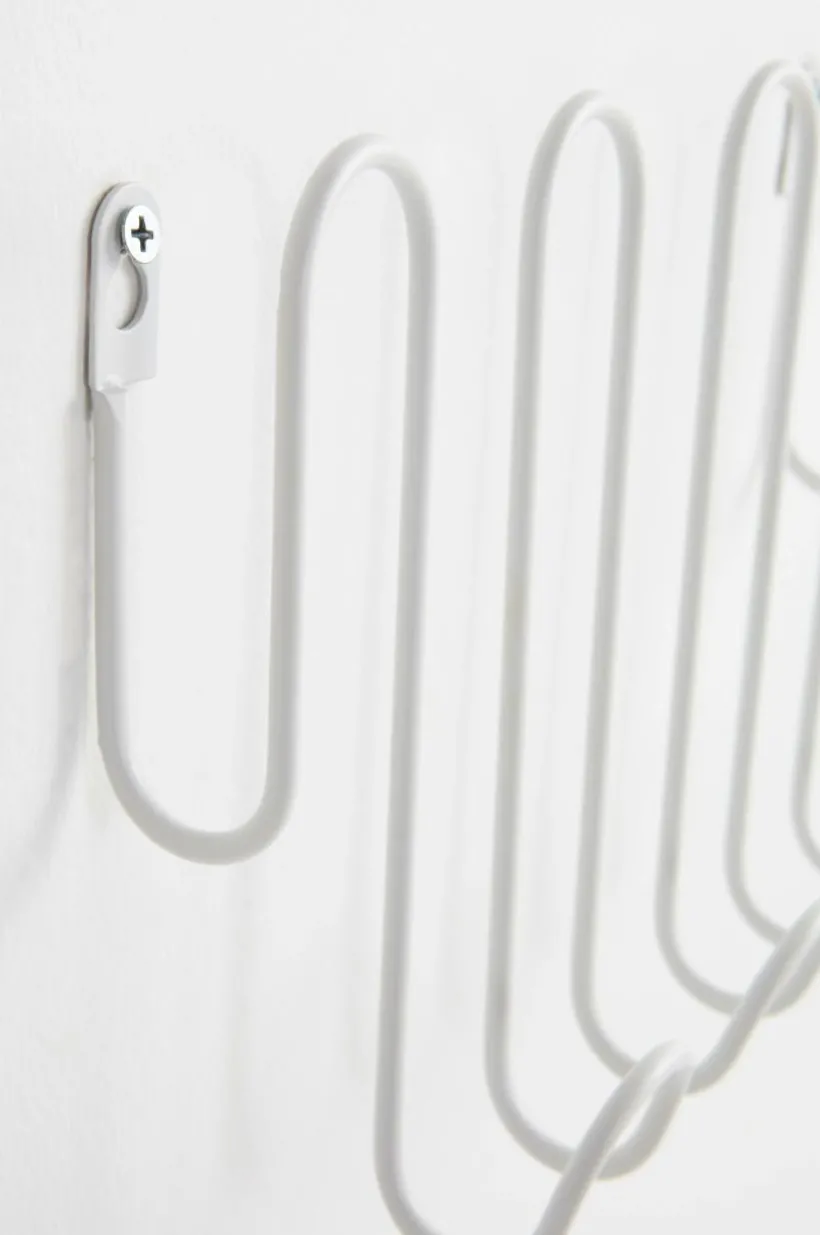 Hängare av järn i rolig design, målad med oljebaserad färg. Hängaren sitter en bit ut från väggen vilket ger dig hängare både på krokarna i nederkant och på alla bågar uppåt. Hängaren skruvas fast i väggen. Skruvar medföljer ej.