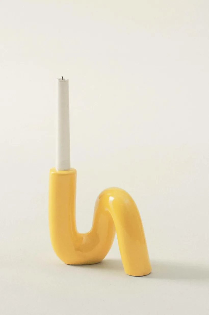 Handgjord ljusstake av keramik. Ljusstaken är lekfull i formen och har blank, färgstark glasyr. Det fina hantverket gör varje ljusstake unik. Ljus medföljer ej.