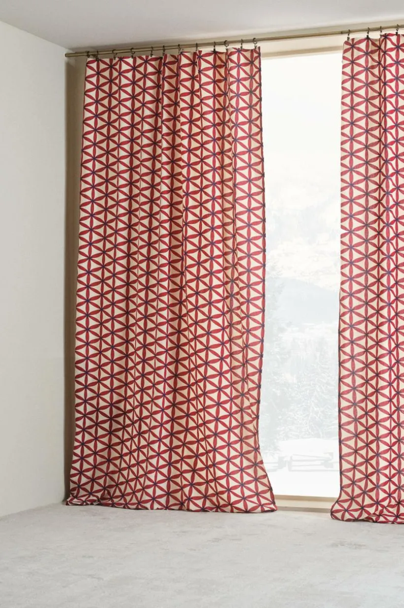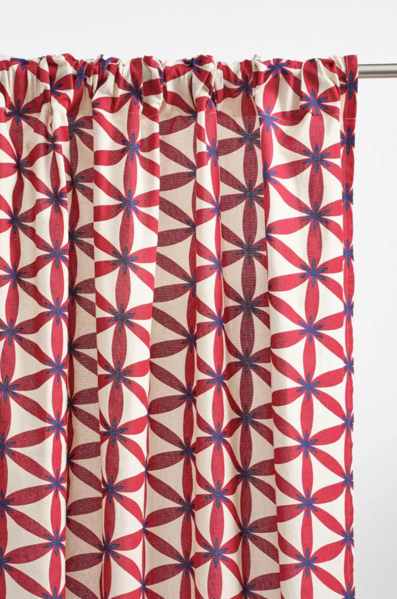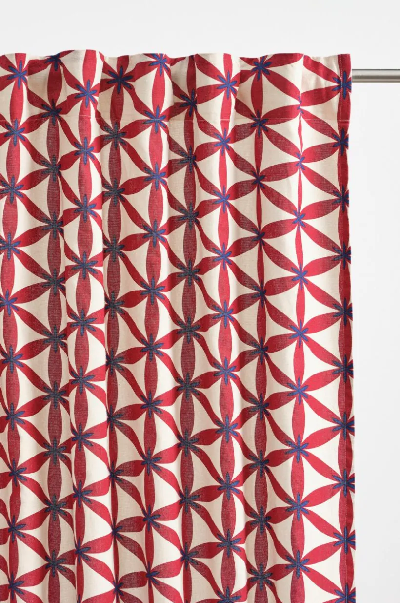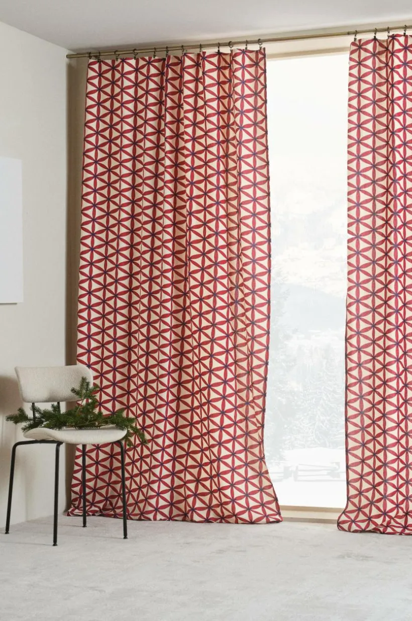 2-pack gardinlängder av plaggtvättad bomull som har mönstertryck med ljus botten. VALERIA har fin mönsterbild som kan stämma in i många miljöer och i olika tider, den känns fräsch på våren och mysig på hösten. VALERIA passar till och med in i stämningsfull juletid. Du matchar i den stil du vill ha och mönstret kommer att förstärka känslan. Plaggtvättad innebär att produkten tvättats efter sömnad och blir extra mjuk och skön. Längderna har påsytt multifunktionsband och kan hängas upp med fingerkrokar, kanal samt dold hälla. Tygets gramvikt 170 g/m².